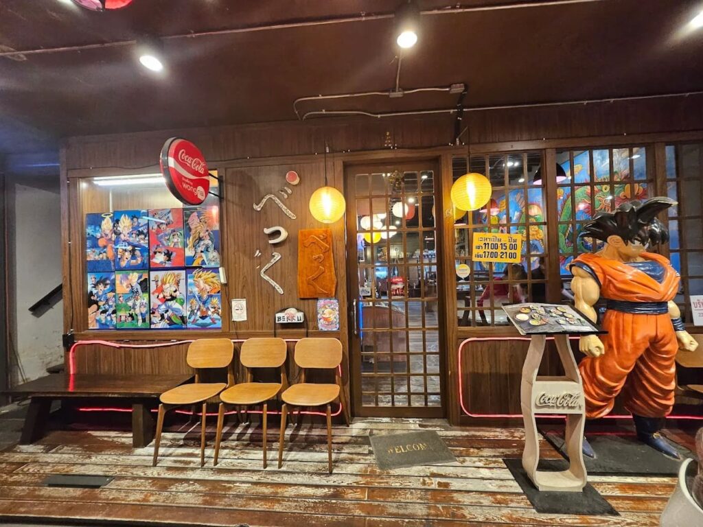 ร้าน Bekku Tonkatsu แม้จะอยู่ใกล้ BTS สนามเป้ามากกว่าอารีย์ แต่ก็ถือเป็นร้านอร่อยที่คนเดินทางมาฝากท้องด้วย จุดเด่นของที่นี่คือเป็นร้านทงคัตสึในตำนานที่เปิดมานานกว่า 20 ปี ที่นี่ขึ้นชื่อเรื่องหมูทอดทงคัตสึสูตรญี่ปุ่นแท้ๆ ที่ทอดได้กรอบฟู ไม่อมน้ำมันเลย แถมหมูชิ้นใหญ่สะใจมากๆ แน่นอนว่าสายแกงกะหรี่ต้องไม่พลาดข้าวแกงกะหรี่หมูสันนอก ที่ได้ทั้งหมูทอดกรอบๆ ชิ้นโต และซอสแกงกะหรี่รสชาติเข้มข้นสไตล์ญี่ปุ่นแท้ๆ อิ่มอร่อยแบบจานเดียวจบ นอกจากนี้ยังมีเมนูให้เลือกอีกเพียบ เช่น หมูสันในสอดไส้ชีสเยิ้มๆ หรือ กิวคัตสึ (Gyukatsu) เนื้อชุบแป้งทอดให้ลองด้วย บรรยากาศร้านก็อบอุ่นสไตล์บ้านไม้ญี่ปุ่น มีกิมมิคเป็นรูปปั้นโกคู จากดราก้อนบอลอยู่หน้าร้านด้วย ใครชอบการ์ตูนเรื่องนี้ต้องแวะมาถ่ายรูปเลย ร้านอยู่ติดถนนพหลโยธิน ใกล้ BTS สนามเป้า ทางออก 4 ราคาต่อหัวประมาณ 200-500 บาท