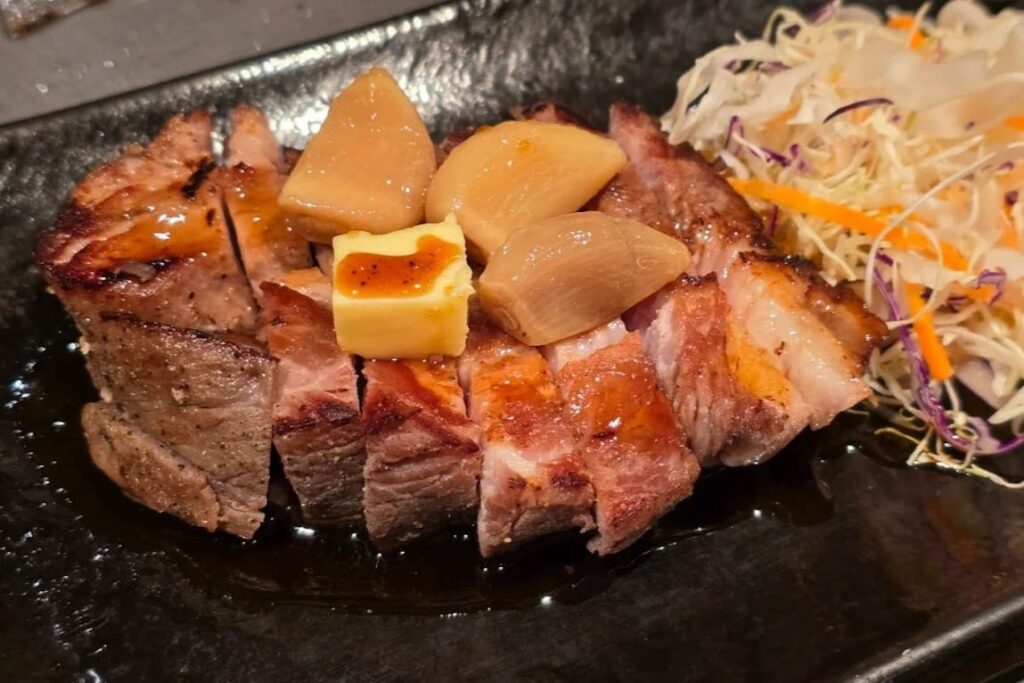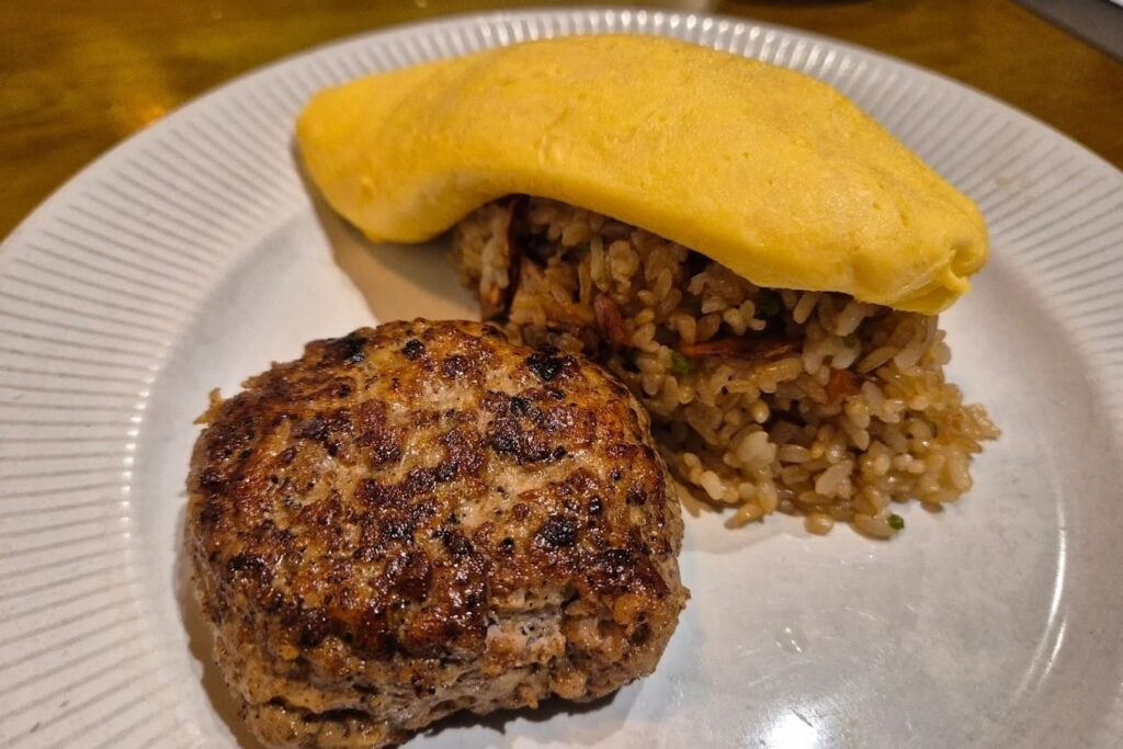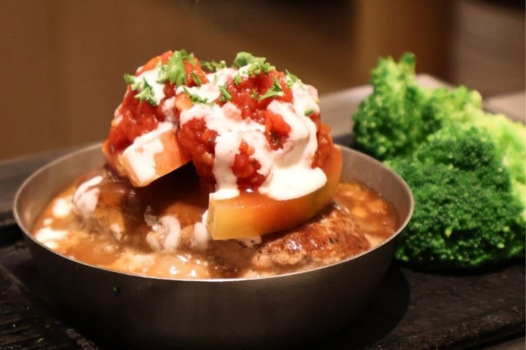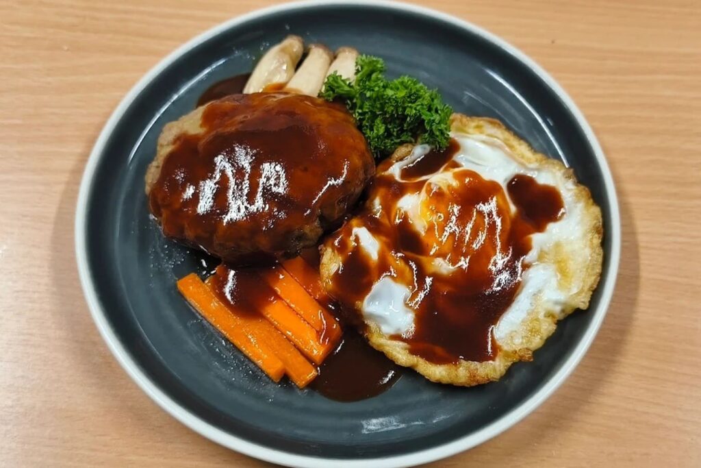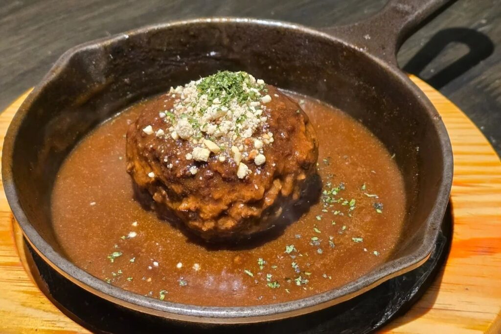 เมนูจานเดี่ยวที่ถือเป็นซิกเนเจอร์คือข้าวหน้าแฮมเบิร์กที่มีให้เลือกทั้งเนื้อวัวและเนื้อหมู โดยมีทีเด็ดอยู่ที่ซอสสูตรเฉพาะของร้าน หรือถ้าใครชอบความสดชื่นหน่อยก็ต้องสั่งซอสพอนซึที่เสิร์ฟมาพร้อมไข่ออนเซ็นเยิ้มๆ ช่วยเพิ่มความนัวเวลาทานคู่กับข้าวสวยร้อนๆ นอกจากนี้ยังมีเมนูบนกระทะร้อนที่เสิร์ฟคู่กับมันฝรั่งย่างและผักเคียง โดยมีซอสแปลกใหม่อย่างซอสพริกเสฉวนที่ให้รสชาติเผ็ดร้อนนิดๆ หรือซอสครีมเห็ดรสละมุนเข้มข้นมาเป็นตัวเลือกเสริมความอร่อย