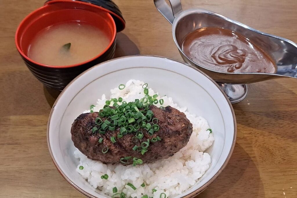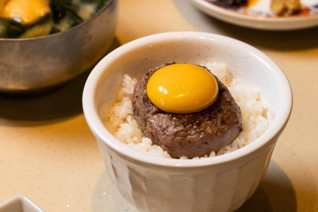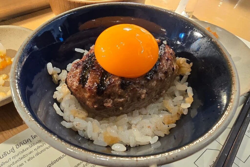 การกินแฮมเบิร์กที่นี่ให้ได้อรรถรสที่สุด แนะนำให้ลองตอกไข่ดิบวางลงบนยอดก้อนเนื้อที่วางอยู่บนข้าวสวยร้อนๆ แล้วเหยาะโชยุลงไปเล็กน้อย ความมันของไข่จะไปเคลือบชิ้นเนื้อบดที่มีความนุ่มละมุน ทำให้ทุกคำที่ตักเข้าปากเต็มไปด้วยความฟินแบบฉบับญี่ปุ่นดั้งเดิม หรือถ้าใครยังไม่จุใจก็สามารถสั่งชิ้นเนื้อแยกเพิ่มได้ตามความชอบ เป็นร้านที่ตอบโจทย์ทั้งเรื่องความอิ่มท้องและความสนุกในการมิกซ์แอนด์แมตช์รสชาติด้วยเครื่องปรุงหลากหลายบนโต๊ะ