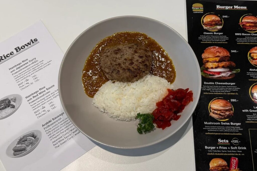 เมนูเด่นในหมวดข้าวหน้าแฮมเบิร์กที่อยากแนะนำคือการทานคู่กับซอสแกงกะหรี่ญี่ปุ่นรสเข้มข้นที่เคี่ยวมาจนเข้าเนื้อ หรือถ้าใครชอบรสสัมผัสที่มีความหรูหราขึ้นมาหน่อยก็มีซอสไวน์แดงที่ให้รสชาติลุ่มลึกตัดกับความมันของเนื้อได้เป็นอย่างดี สามารถเลือกประเภทของเนื้อได้ตามใจชอบ ไม่ว่าจะเป็นเนื้อวัวคุณภาพพรีเมียม เนื้อหมูที่นุ่มชุ่มฉ่ำ หรือแม้แต่เนื้อไก่สำหรับคนเน้นสุขภาพ ซึ่งทุกจานจะเสิร์ฟมาพร้อมกับข้าวญี่ปุ่นเม็ดนุ่มและเครื่องเคียงที่ช่วยเพิ่มมิติการทานให้สนุกยิ่งขึ้น