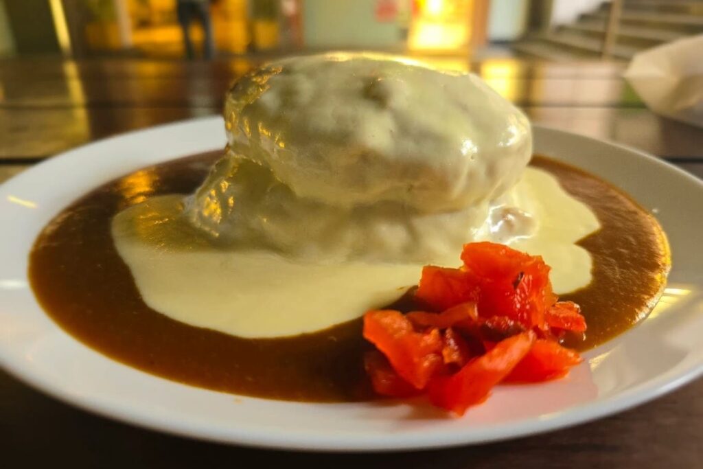 เมนูที่จัดว่าเป็นตัวตึงของร้านต้องยกให้ข้าวแกงกะหรี่แฮมเบิร์กราดชีส ที่เสิร์ฟชีสลาวาเยิ้มๆ ปริมาณจุใจลงบนก้อนเนื้อบดชิ้นหนา ตัวซอสแกงกะหรี่มีความเข้มข้นกำลังดี ไม่เผ็ดจนเกินไป เข้ากันได้ดีกับความมันของชีสและน้ำเนื้อที่ไหลซึมออกมา หรือถ้าใครอยากเปลี่ยนบรรยากาศก็มีเมนูแฮมเบิร์กแกงกะหรี่ท็อปด้วยไข่ดาว หรือไข่ข้นเนื้อนุ่มที่ช่วยเพิ่มเลเยอร์ความอร่อยให้ซับซ้อนยิ่งขึ้น สำหรับสายกินที่อยากลองหลายอย่างในครั้งเดียว แฮมเบิร์กมิกซ์ที่มีทั้งเนื้อบดและของทอดต่างๆ มาให้ครบในจานเดียวก็เป็นทางเลือกที่คุ้มค่า