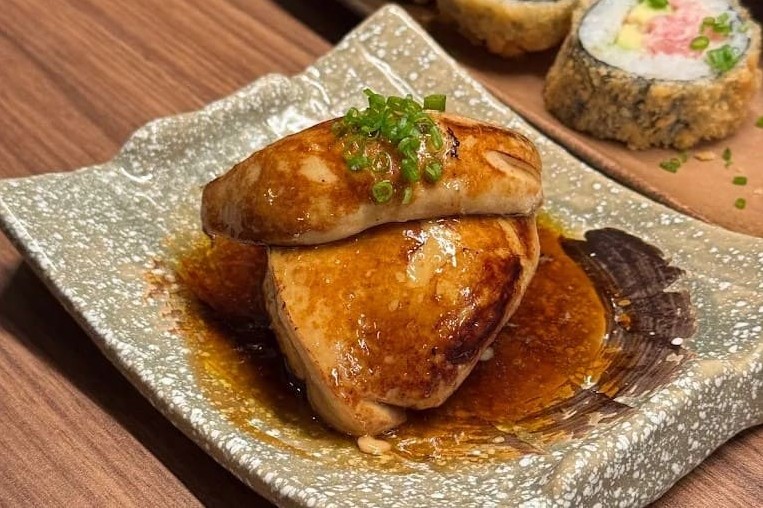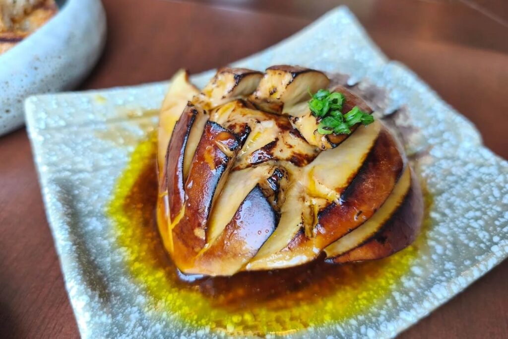 สำหรับเมนูอาหาร ที่นี่นำเสนอศิลปะการย่างด้วยถ่านไม้สนบินโจตันที่มอบกลิ่นหอมลึกเป็นเอกลักษณ์ โดยมีเมนูชูโรงอย่างยากิโทริหรือไก่เสียบไม้ที่มีให้เลือกทานตั้งแต่ส่วนสะโพกไก่ย่างต้นหอมเนื้อนุ่ม หนังไก่ย่างกรอบๆ ไปจนถึงตับไก่รสละมุน และยังมีที่น่าสนใจอย่างพุงปลาทูน่าย่างรสอูมามิเข้มข้น สลัดมะเขือเทศออร์แกนิกซอสชิโซะเพสโต้ที่ให้ความสดชื่น หรือจะเป็นเมนูที่เพิ่มความพิเศษขึ้นมาอย่างพาสต้าอูนิรสชาติเข้มข้นหอมมันจัดเต็มด้วยไข่หอยเม่นและไข่ปลาแซลมอน นอกจากนี้ยังมีเนื้อแองกัสสตริปลอยน์ย่างถ่านที่คัดสรรมาอย่างดีเสิร์ฟคู่กับซอสสูตรพิเศษ รวมถึงเมนูทานเล่นอย่างไก่ทอดสไตล์ญี่ปุ่นและข้าวโพดหวานย่างเนยฝรั่งเศส ทุกจานถูกออกแบบมาเพื่อส่งเสริมรสชาติของสาเกและค็อกเทลได้อย่างลงตัว