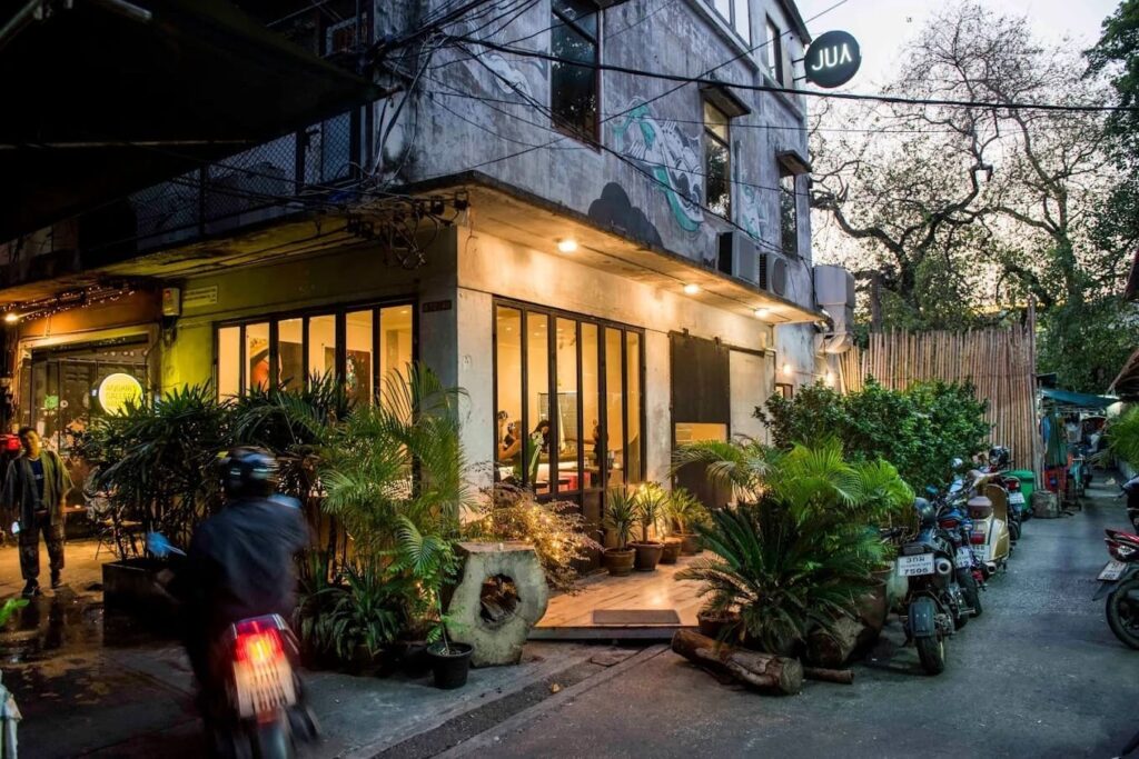 JUA Izakaya เป็นร้านที่แอบซ่อนตัวอยู่ในตรอกเล็กๆ ย่านเจริญกรุง ร้านถูกรีโนเวทใหม่ให้กลายเป็นร้านอาหารญี่ปุ่นสุดเท่ที่ยังคงกลิ่นอายความลึกลับและเปี่ยมไปด้วยเสน่ห์ของงานดีไซน์ บรรยากาศภายในร้านให้ความรู้สึกเหมือนหลุดเข้าไปอยู่ในบาร์ลับใจกลางกรุงโตเกียวที่มีความขรึมด้วยผนังปูนเปลือยและงานไม้โทนเข้ม แสงไฟสลัวๆ ช่วยสร้างบรรยากาศที่ดูเป็นส่วนตัวแต่ก็ยังแฝงความสนุกสนานแบบเป็นกันเอง จุดเด่นที่ห้ามพลาดคือบรรยากาศการนั่งล้อมรอบเตาย่างถ่านไม้สนที่ส่งกลิ่นหอมฟุ้งไปทั่วร้าน ทำให้มื้ออาหารธรรมดากลายเป็นประสบการณ์ที่น่าตื่นเต้นและมีชีวิตชีวามากยิ่งขึ้น
