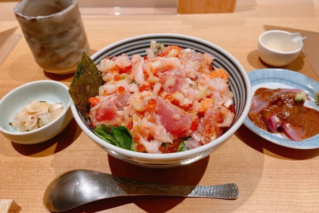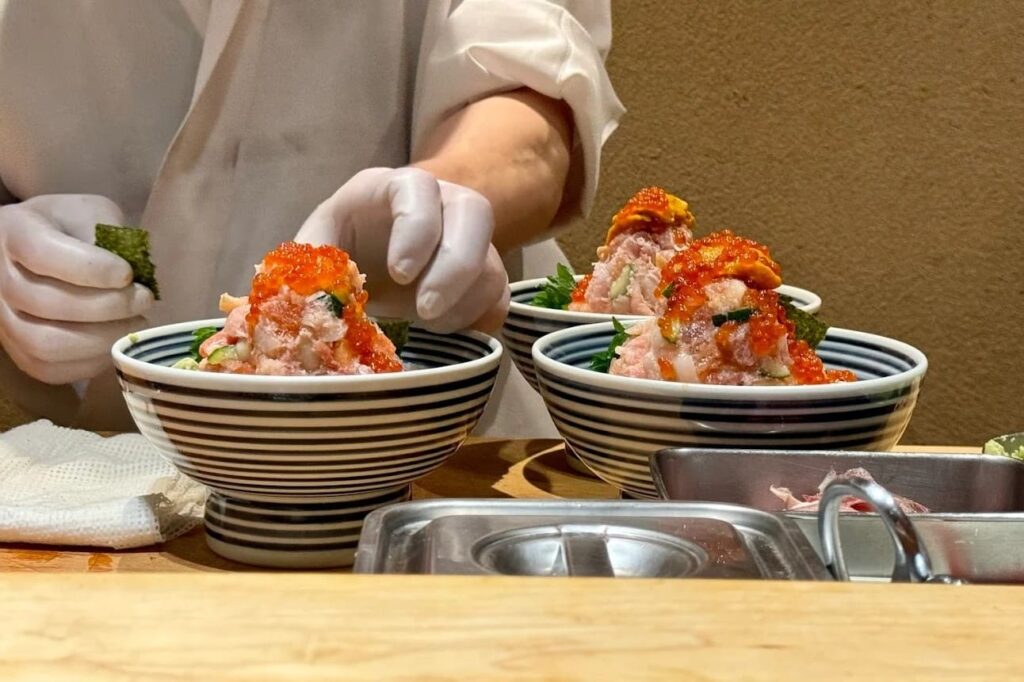 เมนูอาหารที่ห้ามพลาดและเป็นหัวใจสำคัญของร้านคือ Zeitaku Don หรือข้าวหน้าทะเลรวมที่จัดเต็มด้วยวัตถุดิบชั้นเลิศอย่างเนื้อซี่โครงมากุโร่สับ ไข่ปลาอิคุระ เนื้อกุ้ง เนื้อหอย และอุนิที่พูนจนล้นชาม ความพิเศษที่ไม่เหมือนร้านอื่นคือประสบการณ์การกินที่มีลำดับขั้น โดยเริ่มจากการทานปลาดิบสดๆ คู่กับซอสสูตรเฉพาะ จากนั้นเมื่อทานไปได้ประมาณครึ่งชาม สามารถขอให้เชฟเติมน้ำซุปร้อนๆ รสกลมกล่อมลงไปในชามเพื่อเปลี่ยนมื้ออาหารให้กลายเป็นข้าวต้มญี่ปุ่นหรือโอฉะสึเกะ (Ochazuke) ที่ปิดท้ายมื้อได้อย่างละมุนและชื่นใจที่สุด นอกจากความสดของปลาแล้ว ตัวน้ำซุปที่เคี่ยวจนเป็นสีขาวนวลยังเป็นทีเด็ดที่ทำให้หลายคนยอมรอคิว สำหรับราคาต่อหัวโดยเฉลี่ยคาดว่าจะอยู่ที่ประมาณ 800-1,500 บาท