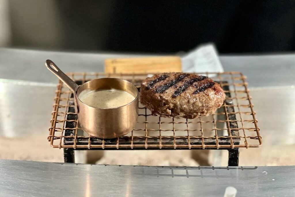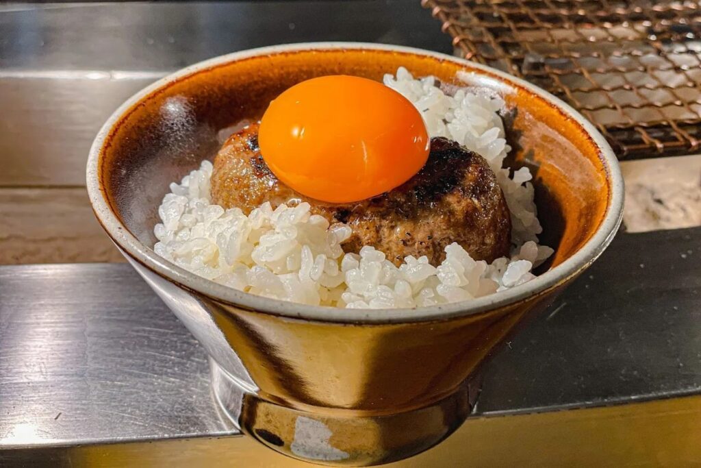 เมนูที่ห้ามพลาดและเป็นหัวใจสำคัญของร้านคือชุดแฮมเบิร์กเนื้อวากิวที่เสิร์ฟพร้อมกับข้าวสวยหุงด้วยหม้อหุงข้าวเหล็กแบบญี่ปุ่นแท้ๆ ช่วยให้เมล็ดข้าวมีความนุ่มหนึบและเงางาม ความพิเศษอยู่ที่เนื้อแฮมเบิร์กซึ่งใช้เนื้อส่วนที่ดีที่สุดสับละเอียดและปรุงรสอย่างพิถีพิถัน เมื่อนำไปย่างถ่านจนสุกกำลังดีจะให้รสสัมผัสที่นุ่มชุ่มฉ่ำและมีกลิ่นหอมเฉพาะตัว ในหนึ่งชุดจะได้รับเนื้อ 3 ชิ้นใหญ่ที่แนะนำให้ทานคู่กับไข่ไก่สดเกรดพรีเมียมและเครื่องปรุงรสต่างๆ บนโต๊ะที่มีให้เลือกหลากหลายสไตล์เพื่อเปลี่ยนรสชาติในแต่ละคำ นอกจากนี้ยังมีผักดองและซุปมิโซะที่ช่วยตัดเลี่ยนได้เป็นอย่างดี สำหรับช่วงราคาต่อหัวโดยเฉลี่ยจะอยู่ที่ประมาณ 600-800 บาท