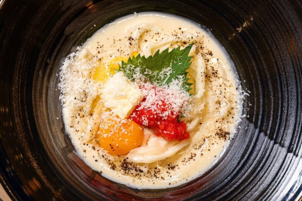 เมนูอาหารที่ห้ามพลาดและเป็นซิกเนเจอร์ชูโรงคือ Mentaiko Carbonara Udon ที่เป็นการผสมผสานระหว่างซอสครีมคาโบนาร่ารสเข้มข้นเข้ากับไข่ปลาเมนไทโกะรสเค็มนำและกลิ่นหอมของเนย เมื่อทานคู่กับเส้นอุดงที่ทั้งนุ่มและมีความหนึบสู้ฟันที่เป็นเอกลักษณ์เฉพาะตัวแล้วถือว่าลงตัวแบบสุดๆ หรือหากใครชอบสไตล์ดั้งเดิมต้องลองอุดงร้อนในซุปดาชิที่สกัดจากปลาแห้งพรีเมียมให้รสชาติกลมกล่อมเชงๆ ซดคล่องคอ นอกจากนี้ยังมีเทมปุระทอดใหม่ๆ ที่แป้งบางกรอบและไม่อมน้ำมันไว้ให้เลือกสั่งมาทานคู่กันเพื่อเพิ่มเนื้อสัมผัสความอร่อย ความพิเศษของร้านนี้คือการใช้แป้งนำเข้าและน้ำที่มีค่าความเป็นด่างตามสูตรต้นตำรับเพื่อให้ได้เส้นที่มีคุณภาพสูงสุด สำหรับช่วงราคาต่อหัวโดยเฉลี่ยจะอยู่ที่ประมาณ 250-500 บาท