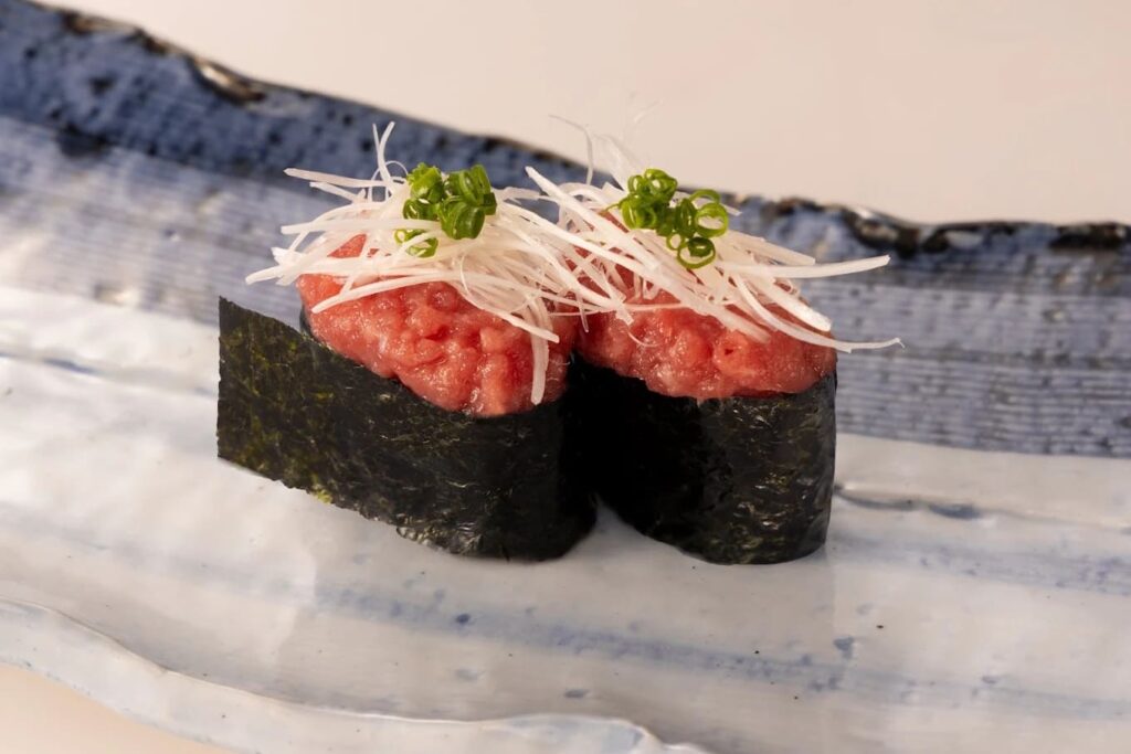 เมนูอาหารที่ห้ามพลาดคือกลุ่มปลาสดๆ ที่ส่งตรงจากตลาดปลาชั้นนำในญี่ปุ่น โดยเฉพาะเมนูจากทูน่าสายพันธุ์ดีอย่าง ชูโทโร่และโอโทโร่ ที่เชฟจะทำการคัดสรรและปั้นอย่างประณีตเพื่อให้ได้รสสัมผัสที่ละลายในปาก อีกหนึ่งไฮไลต์คือการเลือกใช้ข้าวซูชิที่ปรุงรสด้วยสูตรเฉพาะของทางร้านซึ่งเข้ากันได้ดีกับหน้าปลาต่างๆ นอกจากซูชิคำหลักแล้วยังมีเมนูพิเศษตามฤดูกาลและอาหารทานเล่นที่ครีเอทออกมาได้อย่างน่าประทับใจ ความใส่ใจในทุกรายละเอียดตั้งแต่อุณหภูมิของข้าวไปจนถึงความสดของวัตถุดิบทำให้ทุกจานคุ้มค่าแก่การลิ้มลอง สำหรับช่วงราคาต่อหัวโดยเฉลี่ยจะอยู่ที่ประมาณ 1,000 บาทขึ้นไป
