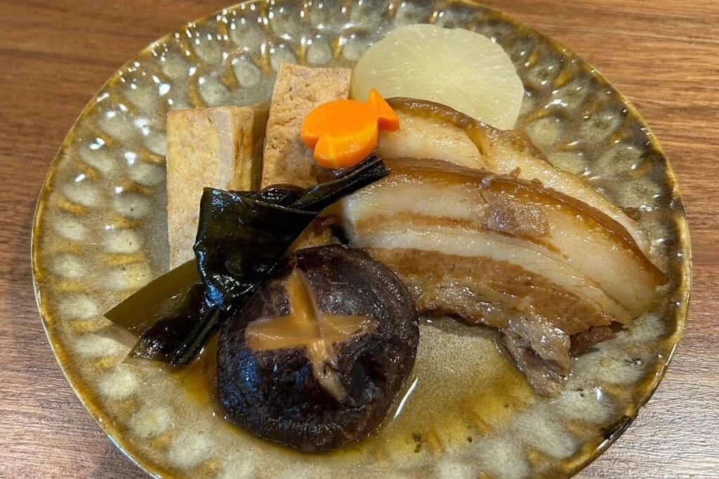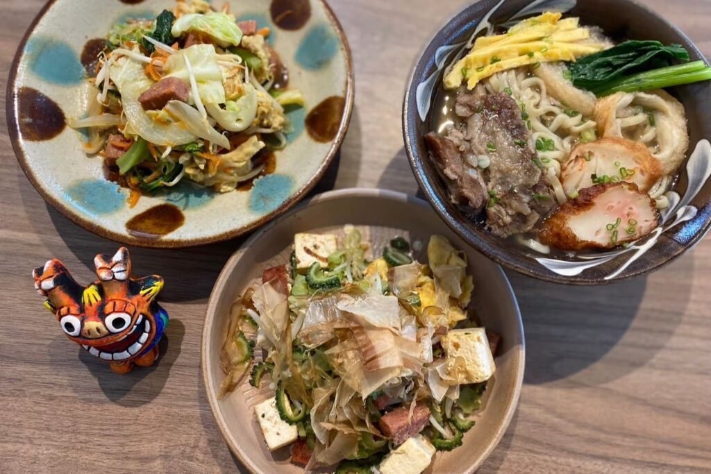 เมนูที่พลาดไม่ได้และถือเป็นซิกเนเจอร์ของร้านเลยคือราฟุเท (Rafute) หรือหมูสามชั้นตุ๋นซีอิ๊วสไตล์โอกินาว่าที่เคี่ยวจนเนื้อนุ่มแทบละลายในปาก รสชาติเค็มหวานกลมกล่อมเข้าเนื้อและมีความหอมของอาวาโมริ (Awamori) จางๆ อีกจานที่ต้องลองคือโกยะ ชัมปุรุ (Goya Champuru) หรือผัดมะระโอกินาว่าที่ทำออกมาได้รสชาติกลมกล่อมมาก มะระมีความขมนิดๆ ตัดกับรสสัมผัสของเต้าหู้และไข่ได้อย่างลงตัว หรือจะสั่งโอกินาว่าโซบะ (Okinawa Soba) มาซดน้ำซุปร้อนๆ ที่รสชาติสบายท้องก็เป็นตัวเลือกที่ดี ความพิเศษของอาหารที่นี่คือการใช้วัตถุดิบและสูตรอาหารที่ส่งต่อกันมาซึ่งให้รสชาติที่เน้นความเป็นธรรมชาติและมีเอกลักษณ์เฉพาะตัวแบบริวกิวแท้ๆ