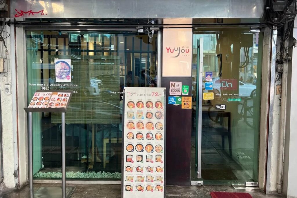 Yuu Jou Ramen สาขาเอกมัยนำเสนอประสบการณ์การกินราเมงที่เน้นความจัดจ้านและรสชาติที่เข้าถึงง่าย โดยเฉพาะคนที่หลงรักซุปกระดูกหมูทงคัตสึแบบเข้มข้นถึงใจแต่ยังมีความกลมกล่อม เอกลักษณ์ของที่นี่คือการปรุงน้ำซุปให้มีความนัวและหอมมันเป็นพิเศษ เมนูซิกเนเจอร์ที่หลายคนต้องสั่งคือทงคัตสึราเมงที่เสิร์ฟพร้อมหมูชาชูชิ้นหนานุ่มที่ผ่านการตุ๋นจนแทบละลายในปาก และยังมีชาชูเมน เมนูราเมงที่ถูกใจคนรักหมูชาชูโดยเฉพาะ เส้นราเมงของทางร้านมีความเหนียวนุ่มกำลังดี ซึมซับรสชาติของซุปได้ดีเยี่ยม ทำให้ภาพรวมของอาหารในแต่ละชามมีความสมดุลระหว่างความมัน ความเค็ม และความหอมของเครื่องเทศ