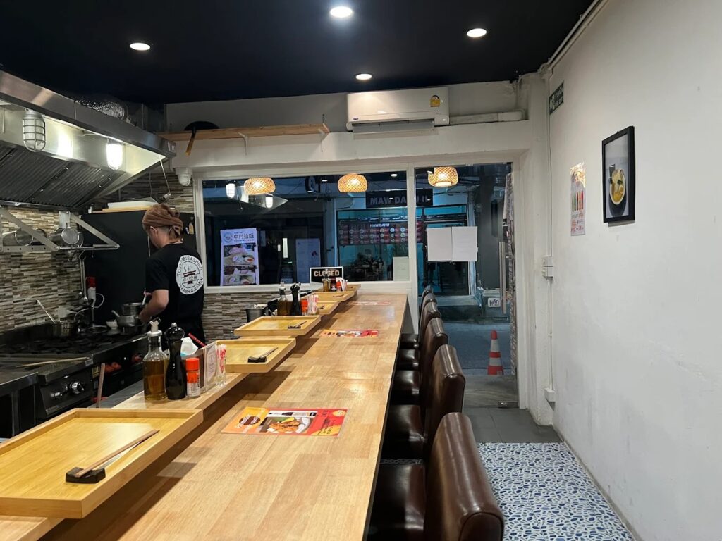 ร้านนี้ให้บรรยากาศที่ทันสมัยกว่าร้านราเมงดั้งเดิมทั่วไป เหมาะสำหรับการมานั่งทานในวันสบาย ๆ หรือมื้อค่ำที่ต้องการความอิ่มอร่อยแบบจัดเต็ม อีกหนึ่งทีเด็ดที่ห้ามพลาดคือเครื่องเคียงที่ทำออกมาได้อร่อยและช่วยเสริมรสชาติของราเมงชามหลักได้อย่างลงตัว ร้านตั้งอยู่ในศูนย์การค้าไทยซินสแควร์ (Taisin Square) ตึก 2 สามารถเดินทางมาได้สะดวกทั้งรถส่วนตัวและรถสาธารณะ ราคาต่อหัวโดยประมาณจะอยู่ที่ 200-400 บาท