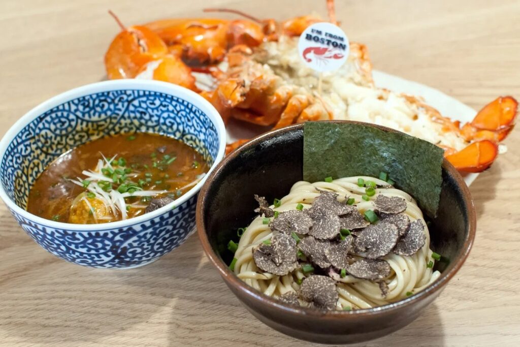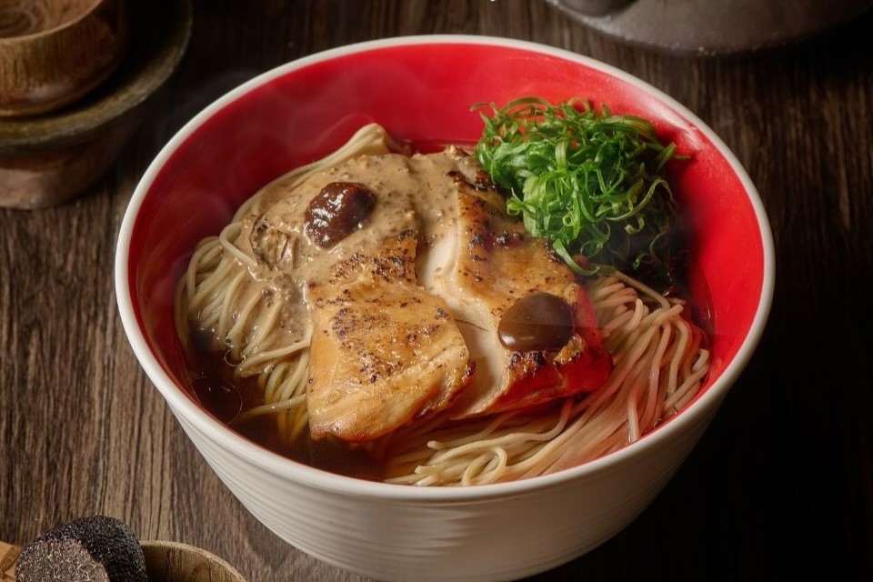 Tsuta Japanese Soba Noodles คือร้านราเมงระดับตำนานที่สร้างประวัติศาสตร์ด้วยการเป็นร้านราเมงแห่งแรกของโลกที่ได้รับดาวมิชลิน 1 ดวง จุดเด่นที่เหนือชั้นคือการยกระดับราเมงแบบเดิมให้มีความเป็นอาหารฝรั่งเศสชั้นสูง โดยเลือกใช้น้ำมันทรัฟเฟิลเป็นส่วนประกอบหลักเพื่อสร้างกลิ่นหอมที่หรูหราและเป็นเอกลักษณ์เฉพาะตัว เบสน้ำซุปของที่นี่ทำจากวัตถุดิบคุณภาพสูงอย่าง ไก่ อาหารทะเล และโชยุรสเลิศ จนได้รสชาติที่กลมกล่อมแต่ยังคงความซับซ้อน บรรยากาศภายในร้านสาขานี้ตกแต่งอย่างทันสมัยและมีระดับ ให้ความรู้สึกเหมือนกำลังนั่งทานอยู่ในร้านอาหารไฟน์ไดนิ่ง