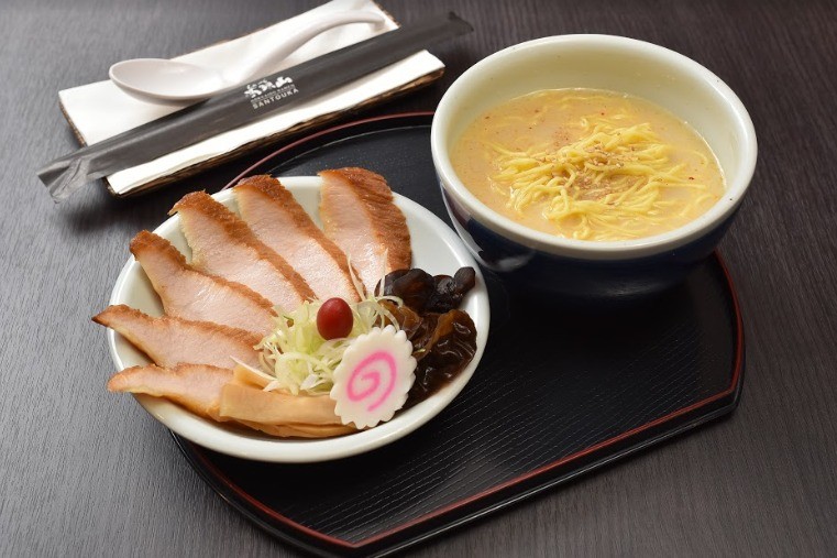 Hokkaido Ramen Santouka เป็นร้านราเมงชื่อดังระดับตำนานจากเมืองอาซาฮิคาว่าที่ยังคงรักษาสูตรลับความอร่อยมายาวนานหลายทศวรรษ จุดเด่นที่สุดคือหมูชาชูส่วนแก้มหมูหรือ Tokusen Toroniku ที่มีความนุ่มละมุนลิ้นราวกับละลายในปาก ซึ่งหาทานได้ยากเพราะในหมูหนึ่งตัวจะมีส่วนนี้เพียงไม่กี่ชิ้นเท่านั้น น้ำซุปของที่นี่เคี่ยวจากกระดูกหมูนานหลายชั่วโมงจนได้สีขาวนวลรสชาติเข้มข้นแต่ไม่มันเลี่ยน เสิร์ฟมาในชามเซรามิกที่ออกแบบมาพิเศษเพื่อรักษาอุณหภูมิความร้อนของซุปให้คงที่ตั้งแต่คำแรกจนถึงคำสุดท้าย บรรยากาศภายในร้านเน้นความเรียบง่ายและอบอุ่นแบบญี่ปุ่นดั้งเดิม
