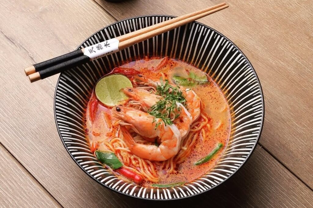 เมนูที่ต้องลองคือ Traditional Pickled Lime Soup with Xi’an Biang Noodles ราเมงเส้นเปี๋ยงซุปกระดูกหมูมะนาวดอง ที่รวมเอาความเข้มข้นของซุปและความเปรี้ยวจัดจ้านของมะนาวไว้ได้อย่างลงตัว หรือหากใครเป็นสายแซ่บต้องไม่พลาด ราเมงต้มยำกุ้งน้ำข้น (Tomyumkung Ramen) ที่รสชาติถึงเครื่องสมุนไพรแบบไทยๆ แต่ยังคงหัวใจของเส้นราเมงที่เหนียวนุ่มแบบญี่ปุ่นไว้ได้ดี นอกจากนี้ยังมีเมนูข้าวหน้าต่างๆ และของทานเล่นอย่างไก่ทอดซอสสูตรพิเศษให้เลือกสั่งมาทานคู่กัน ร้านตั้งอยู่ที่ชั้น 6 ในแพลตตินั่ม แฟชั่นมอลล์ ราคาต่อหัวโดยประมาณอยู่ที่ 200-400 บาท