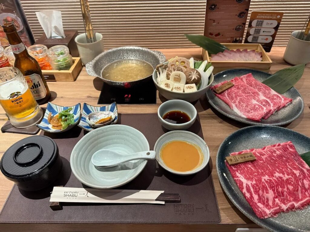 มาต่อกันที่ HITORI SHABU สาขา Marché Thonglor ร้านที่เหมาะสำหรับคนอยากกินชาบูชาบูแบบส่วนตัว หรือกินคนเดียว ชื่อร้านก็บอกอยู่แล้วว่าเน้นความเป็นส่วนตัว มีหม้อชาบูส่วนตัวสำหรับทุกคนที่โต๊ะ จุดเด่นของที่นี่คือความหลากหลายของน้ำซุปที่มีให้เลือกเยอะมาก ทั้งน้ำซุปซิกเนเจอร์อย่างน้ำซุปดาชิหอม ๆ น้ำซุปดำสุกี้ยากี้เข้มข้น หรือน้ำซุปต้มยำสุดแซ่บ ส่วนเนื้อก็มีให้เลือกหลากหลายทั้งเนื้อวากิวพรีเมียม เนื้อหมูคุโรบูตะ และชุดทะเล ร้านนี้เน้นความเป็นพรีเมียมในราคาที่สมเหตุสมผล สามารถเลือกได้ว่าจะสั่งเป็นเซ็ต หรือจะสั่งอะลาคาร์ทก็ได้ แถมทำเลยังสะดวกสบายสุด ๆ เดินทางง่ายมาก ใครอยากกินชาบูชาบูดี ๆ ในบรรยากาศส่วนตัวต้องร้านนี้เท่านั้น ราคาต่อหัวอยู่ที่ประมาณ1,000 บาท ขึ้นไป