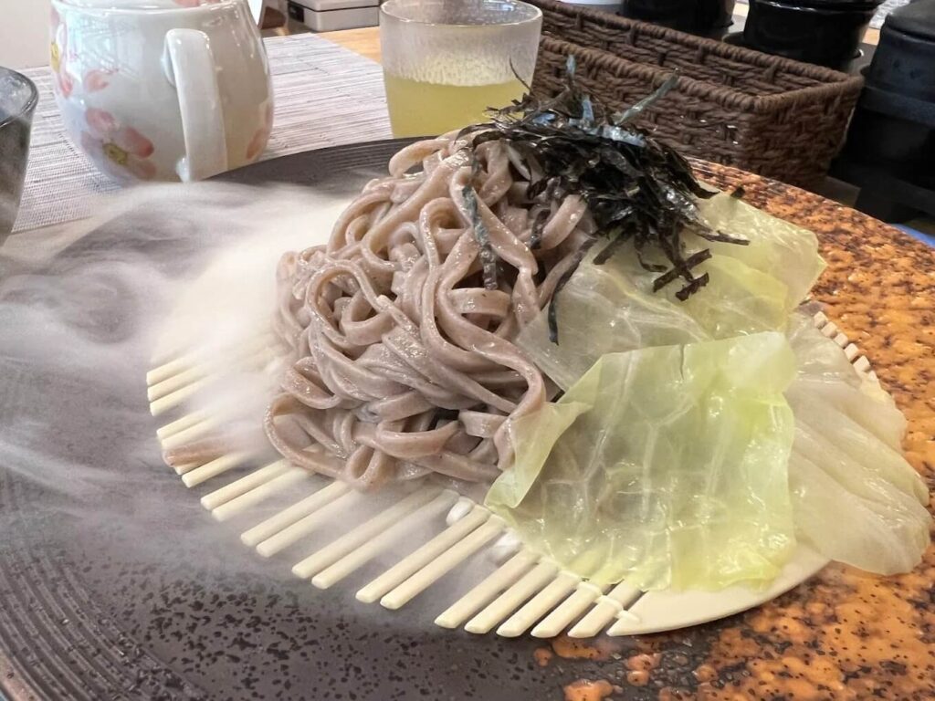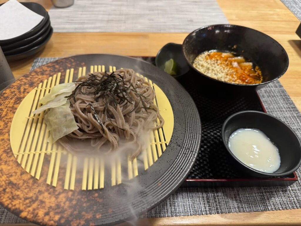 เมนูแนะนำที่ห้ามพลาดคือ Creamy Mentaiko Soba ที่นำความนัวของไข่ปลาเมนไทโกะมาผสมกับซอสครีมเข้มข้นจนเข้ากับเส้นโซบะได้อย่างไม่น่าเชื่อ หรือจะเป็นโซบะเย็นสูตรพิเศษที่เพิ่มความหอมมันด้วยทรัฟเฟิลก็เป็นอีกจานที่ได้รับความนิยมอย่างมาก สำหรับสายเนื้อต้องลองเมนูที่มีเนื้อวากิวสไลด์บางๆ ราดด้วยซอสสูตรลับของทางร้าน