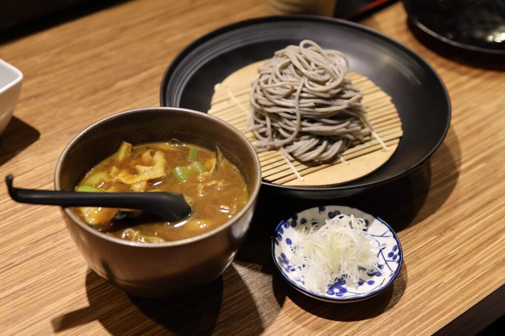 เมนูซิกเนเจอร์ที่ต้องลองคือ Tenzaru Soba ชุดโซบะเย็นที่เสิร์ฟพร้อมเทมปุระทอดใหม่ชิ้นโต แป้งเทมปุระมีความบางกรอบและไม่อมน้ำมัน ช่วยเสริมรสชาติของเส้นโซบะเย็นได้เป็นอย่างดี หรือถ้าใครอยากลองเมนูที่ให้ความสดชื่นแนะนำ Oroshi Soba ที่มาพร้อมหัวไชเท้าขูดและซอสรสกลมกล่อม สำหรับสายซุปร้อนต้องลองอุด้งหน้าแกงกะหรี่ที่ตัวน้ำแกงมีความเข้มข้นถึงใจ