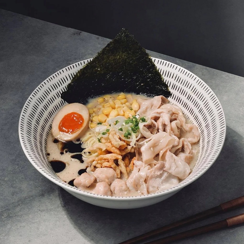 ร้านราเมงสไตล์ฟิวชั่นสุดเก๋ที่ไม่ได้มีดีแค่ชื่อ จุดเด่นคือเมนูเค้าหลากหลายมาก มีทั้งราเมงซุปกระดูกหมูเข้มข้นแบบต้นตำรับ และราเมงฟิวชั่นที่ใส่ความคิดสร้างสรรค์ลงไปแบบจัดเต็ม เช่น ราเมงสุกี้น้ำดำเนื้อวากิว หรือราเมงหม่าล่าเนื้อวากิวที่รสชาติถูกปากคนไทยแน่นอน ที่นี่เน้นเรื่องคุณภาพวัตถุดิบมาก ทั้งซุปทงคตสึที่หอม ไม่คาว ไม่เค็มโดด และยังมีเมนูอื่น ๆ นอกเหนือจากราเมงที่น่าสนใจอีกเพียบ เช่น ซูชิหน้าต่าง ๆ หรือข้าวด้งหอม ๆ บรรยากาศร้านก็สบาย ๆ น่านั่ง แถมยังเปิดบริการตั้งแต่เช้าตรู่ถึงดึกดื่น ร้านตั้งอยู่ในตึก Trinity Complex สีลม ส่วนราคาต่อหัวจะอยู่ที่ 200-300 บาทโดยประมาณ