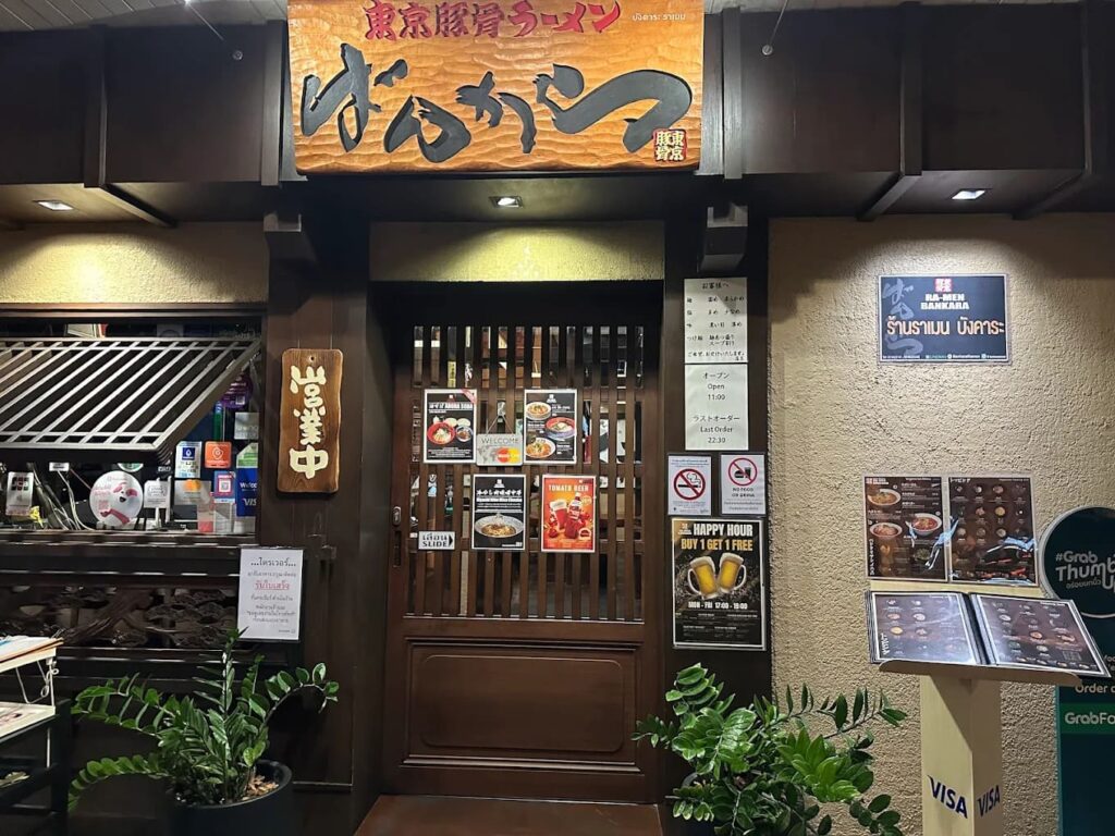 บังคาระ ราเมง (Bankara Ramen) ร้านราเมงเจ้าดังจากญี่ปุ่นที่คนไทยชื่นชอบมาก มีสาขาหลักอยู่ที่สุขุมวิท 39 เป็นราเมงสไตล์โตเกียวแท้ๆ ที่เน้นน้ำซุปกระดูกหมู หรือซุปทงคตสึ (Tonkotsu) เคี่ยวจนเข้มข้นถึงใจ รสชาติกลมกล่อม หอมมัน นอกจากนี้ยังมีความพิเศษคือหมูสามชั้นตุ๋น (Kakuni) สูตรพิเศษที่ตุ๋นนานถึง 3 วันจนนุ่มละลายในปาก เมนูซิกเนเจอร์ที่สั่งกันแทบทุกโต๊ะคือ Kakuni Bankara ราเมงบังคาระต้นตำรับพร้อมหมูสามชั้นตุ๋น หรือถ้าใครไม่ชอบซุปข้นก็มี Bankara Original หรือทงคตสึราเมงให้เลือก หรือจะลองเป็นสึเคเมน (Tsukemen) ก็อร่อยไปอีกแบบ ร้านอยู่ในซอยสุขุมวิท 39 มีราคาต่อหัวอยู่ที่ประมาณ 250-500 บาท