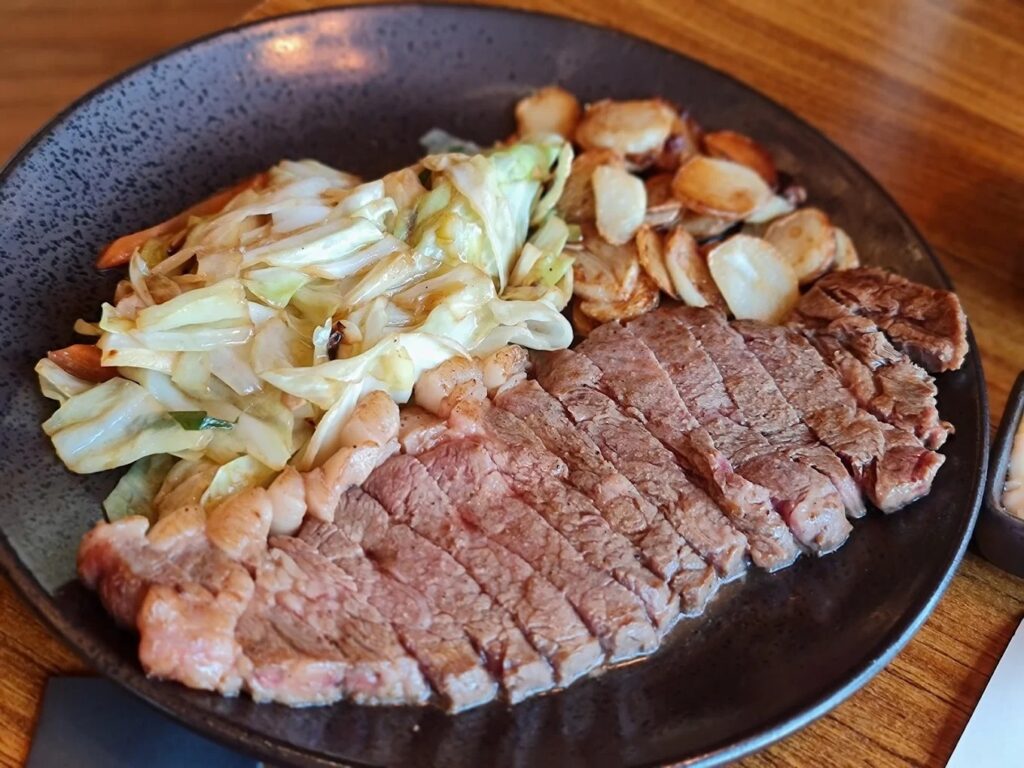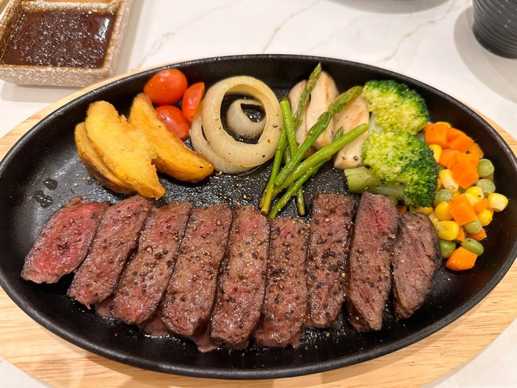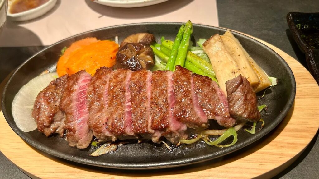 ร้านนี้มีเมนูหลากหลายกว่า 200 รายการ โดยเฉพาะเมนูเนื้อสไตล์อาหารญี่ปุ่นสไตล์ตะวันตกที่ทำถึงมาก ๆ เมนูไฮไลต์ของร้านคือ ซี่โครงเนื้อวากิวย่างถ่าน ที่เนื้อนุ่มฉ่ำสุด ๆ ย่างบนถ่านจนได้กลิ่นหอมรมควัน ให้รสชาติเข้มข้นจัดจ้านแบบที่คนไทยชอบ เมนูเนื้อย่างและสเต๊กต่างๆ ของร้านก็มีคุณภาพสูงและทำออกมาได้อร่อยเลิศทุกจาน หรือใครที่ชอบทานแฮมเบิร์ก บอกเลยว่าเมนูแฮมเบิร์กของร้านนี้ก็อร่อยจนพลาดไม่ได้เด็ดขาด นอกจากนี้ร้านยังมีโซนเทปปันยากิให้ได้ชมเชฟปรุงสเต๊กเนื้อวากิวและอาหารทะเลพรีเมียมอย่างใกล้ชิดด้วยนะ ภายในร้านก็บรรยากาศดี พรีเมียมสุด ๆ แถมยังนำเข้าวัตถุดิบสดใหม่จากญี่ปุ่นมาเสิร์ฟอยู่ตลอด ใครที่ชอบเนื้อคุณภาพดี เมนูอาหารอร่อย ๆ ในบรรยากาศหรูหรา ต้องมาที่นี่เลย ราคาต่อหัวอยู่ที่ประมาณ 500-1,000 บาทขึ้นไป