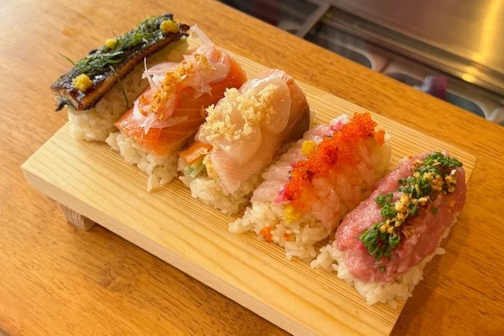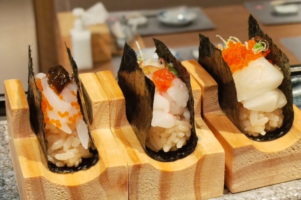 Honmono Sushi ร้านซูชิระดับตำนานที่ครองใจคนไทยมาอย่างยาวนาน ที่เสิร์ฟเมนูแฮนด์โรลพรีเมียมโดยใช้วัตถุดิบนำเข้าที่สดใหม่ส่งตรงจากตลาดปลาซึคิจิเกือบทุกวัน ทำให้เรามั่นใจได้ในเรื่องของคุณภาพปลาที่สดเด้งและรสชาติที่ได้มาตรฐานเดียวกับโอมากาเสะ สาหร่ายที่ใช้มีความกรอบเป็นพิเศษและผ่านการคัดสรรเกรดมาให้เข้ากับตัวข้าวซูชิที่หุงตามสูตรลับเฉพาะของเชฟ เมนูแนะนำที่ถือเป็นซิกเนเจอร์คือ แฮนด์โรลตับห่าน (Foie Gras) ที่นำตับห่านเกรดดีมาเบิร์นไฟจนหอมมันละลายในปาก ราดด้วยซอสสูตรพิเศษที่รสชาติเข้มข้นกลมกล่อม หรือจะเป็นเมนูฮอนโมโนโรล (Honmono) ที่รวบรวมของดีอย่าง โอโทโร่ ปูหิมะ ไข่หอยเม่นและไข่ปลาแซลมอนไว้ในคำเดียว ร้านมีหลายสาขาให้เลือกใช้บริการ เช่น สาขาทองหล่อ สาขาพารากอน สาขาซ็นทรัล ลาดพร้าว ราคาต่อหัวโดยประมาณอยู่ที่ 2,000 บาทขึ้นไป