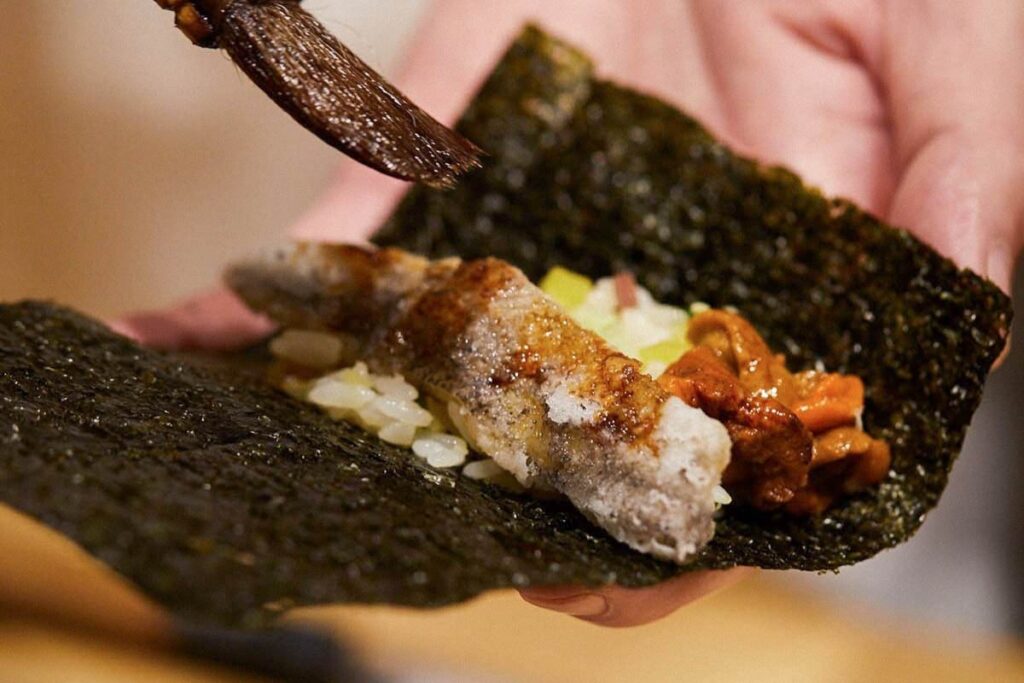 Seki hand roll and sushi bar นำเสนอเสน่ห์ของแฮนด์โรลในสไตล์ที่ผสมผสานความคลาสสิกเข้ากับความร่วมสมัยได้อย่างน่าประทับใจ จุดขายสำคัญของร้านอยู่ที่การคัดสรรวัตถุดิบคุณภาพพรีเมียมระดับเดียวกับร้านโอมากาเสะชื่อดัง แต่เสิร์ฟในรูปแบบที่เข้าถึงง่ายและเป็นกันเองมากขึ้น หัวใจสำคัญคือการใช้สาหร่ายย่างสดใหม่ที่กรอบนานและมีความหอมที่เป็นเอกลักษณ์เฉพาะตัว เมนูซิกเนเจอร์ที่พลาดไม่ได้คือ Taraba Uni Chutoro เป็นการรวมตัวกันของความมันจากปลาทูน่าส่วนท้องและความหวานของเนื้อปูทาราบะ รวมไปถึงไข่หอยเม่นที่ละลายในปากทันทีที่ทาน หรือจะเป็นเมนู Awabi Hand Roll เมนูแฮนด์โรลอันดับหนึ่งของร้านที่พลาดไม่ได้ ร้านตั้งอยู่ในศูนย์การค้าเอ็มสเฟียร์ ชั้น G เดินทางสะดวกใจกลางเมือง ราคาต่อหัวโดยประมาณอยู่ที่ 1,000-2,000 บาท สามารถสั่งทานได้ทั้งแบบอะลาคาร์ทและแบบคอร์ส ที่นี่ไม่ได้มีแค่แฮนด์โรล แต่ยังมีเมนูซูชิและซาซิมิที่หลากหลายให้เลือกสั่งมาทานคู่กันด้วย
