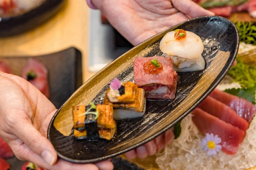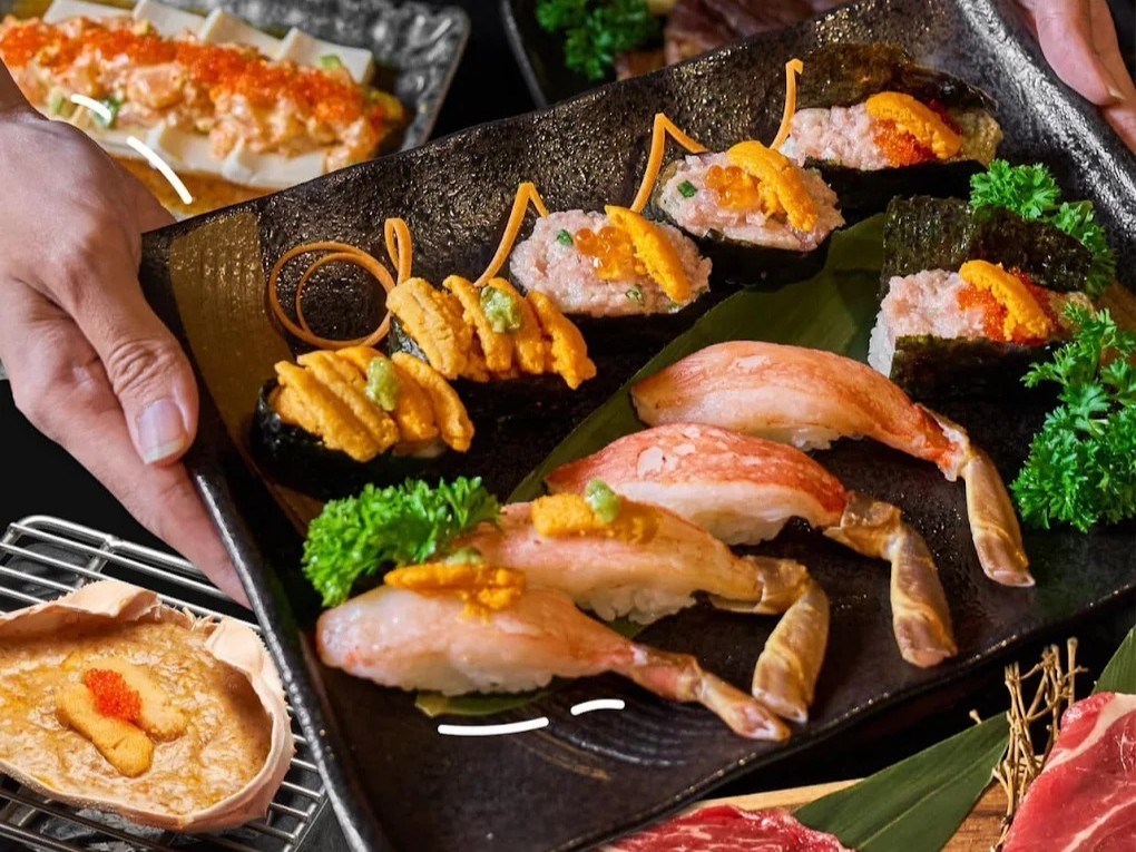 Kouen Sushi Bar อีกร้านที่เป็นเหมือนสวรรค์ของคนรักบุฟเฟต์ซูชิและอาหารญี่ปุ่นแบบพรีเมียมที่ดังเรื่องความหลากหลายของเมนูและคุณภาพของวัตถุดิบ ที่นี่ไม่ได้มีแค่ซูชิหรือซาชิมิ แต่หลายสาขายังมีบริการทั้งชาบูและยากินิกุให้ได้เลือกทานในแพ็คเกจเดียว คือมาที่เดียวได้ทานหลายอย่างมาก ๆ เมนูซูชิของที่นี่ก็เด็ดไม่แพ้ใคร เพราะมีให้เลือกเยอะมาก ตั้งแต่หน้าแซลมอนสด ๆ ซูชิฟัวกราส์ ไปจนถึงซูชิเนื้อวากิวระดับพรีเมียม หรือเมนูพิเศษอย่างมันปูย่างก็ห้ามพลาด แพ็กเกจบุฟเฟต์ของที่นี่มีหลายราคาให้เลือกตามใจชอบเลย ยิ่งแพ็คเกจราคาสูง ๆ ก็จะรวมเมนูเด็ด ๆ และวัตถุดิบสุดหรูอย่างอูนิ หรือกุ้งโบตั๋นไว้ด้วย กินได้ยาว ๆ 120 นาที แถมราคาก็รวมเครื่องดื่มและของหวานแล้วด้วย คุ้มสุดๆ ไปเลย ราคาต่อหัวเริ่มต้นที่ประมาณ 599 บาท