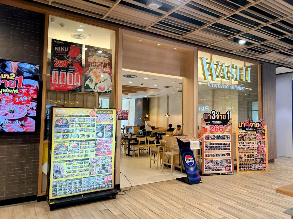 ร้านนี้คือสวรรค์ของคนชอบอาหารญี่ปุ่นที่อยากจัดเต็มหลายแนว เพราะมีให้เลือกทั้งซูชิ ซาชิมิ ชาบู และปิ้งย่างในบุฟเฟต์เดียว จุดเด่นที่ทำให้ WASHI เป็นที่พูดถึงคือความคุ้มค่าและวัตถุดิบเกรดพรีเมียมที่ใช้ ทำให้สามารถทานอาหารเกรดดี ๆ  ในราคาสบายกระเป๋าได้ เมนูซูชิที่นี่หลากหลายและจัดเต็มสุด ๆ ตั้งแต่แซลมอนสดชิ้นหนา ๆ ซูชิเอนกาวะ ฟัวกราส์ ไปจนถึงไข่ปลาแซลมอนล้น ๆ โดยเฉพาะในแพ็คเกจราคาสูง ที่จะได้ฟินกับเนื้อวากิวสำหรับปิ้งย่าง หรือชาบูน้ำซุปหอม ๆ ไปพร้อมกัน แถมบางสาขายังมีโปรโมชั่นเด็ด ๆ อย่าง มา 2 จ่าย 1 หรือส่วนลดพิเศษอีกเพียบ ทำให้ราคาต่อหัวคุ้มเกินบรรยายไปอีก ที่สำคัญคือทานได้ยาว ๆ ถึง 2 ชั่วโมงเต็ม ๆ ราคาบุฟเฟต์เริ่มต้นที่ประมาณ 300++ บาท
