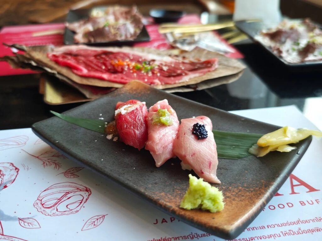 ใครที่มองหาบุฟเฟต์ซูชิและซีฟู้ดแบบพรีเมียมในบรรยากาศสุดหรู ต้องไม่พลาดร้าน NAMA Japanese and Seafood Buffet  ร้านนี้ตั้งอยู่ในโรงแรมเซ็นทาราแกรนด์ฯ ที่เซ็นทรัลเวิลด์ จุดเด่นที่ทำให้คนแห่กันมาคือ DIY Don Zone ที่มีไข่ปลาแซลมอนให้ตักได้ไม่อั้น อยากทำข้าวหน้าปลาแซลมอนล้น ๆ หรือจะโปะอิคุระจนเต็มชามก็ทำได้ตามใจชอบเลย นอกจากซูชิและซาชิมิที่สดใหม่แล้ว ที่นี่เค้ายังจัดเต็มเมนูอื่น ๆ อีกเพียบ ทั้งซีฟู้ดออนไอซ์ โซนเทปันยากิ สเต๊กเนื้อวากิว ซูชิฟัวกราส์  หรือแม้แต่หอยนางรมญี่ปุ่นก็มีให้สั่ง และที่เจ๋งไปอีกคือมีเมนูพิเศษให้เลือกคนละ 1 เมนูในราคาเริ่มต้นด้วย เรียกว่าคุ้มค่าทั้งรสชาติ คุณภาพ และวิวสวย ๆ ที่มองเห็นกรุงเทพฯ แบบเต็มตา ถือเป็นร้านที่เหมาะสำหรับโอกาสพิเศษเลยล่ะ ราคาต่อหัวเริ่มต้นที่ 999 บาท++