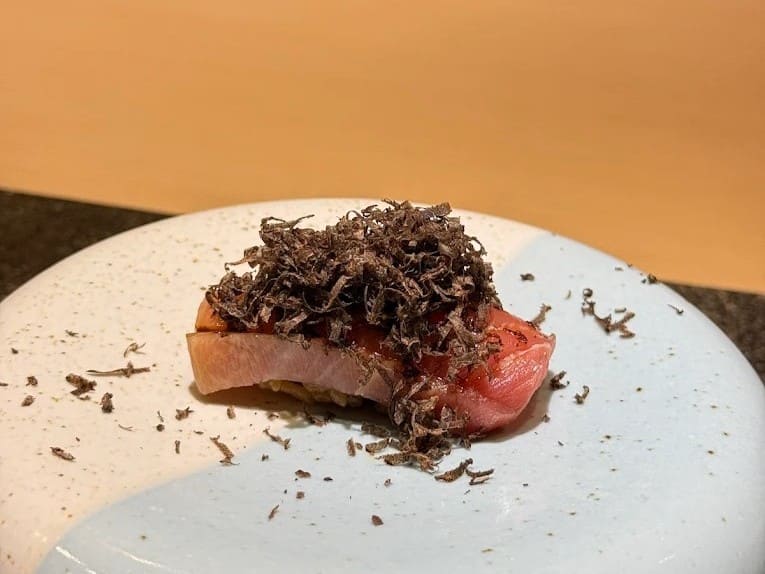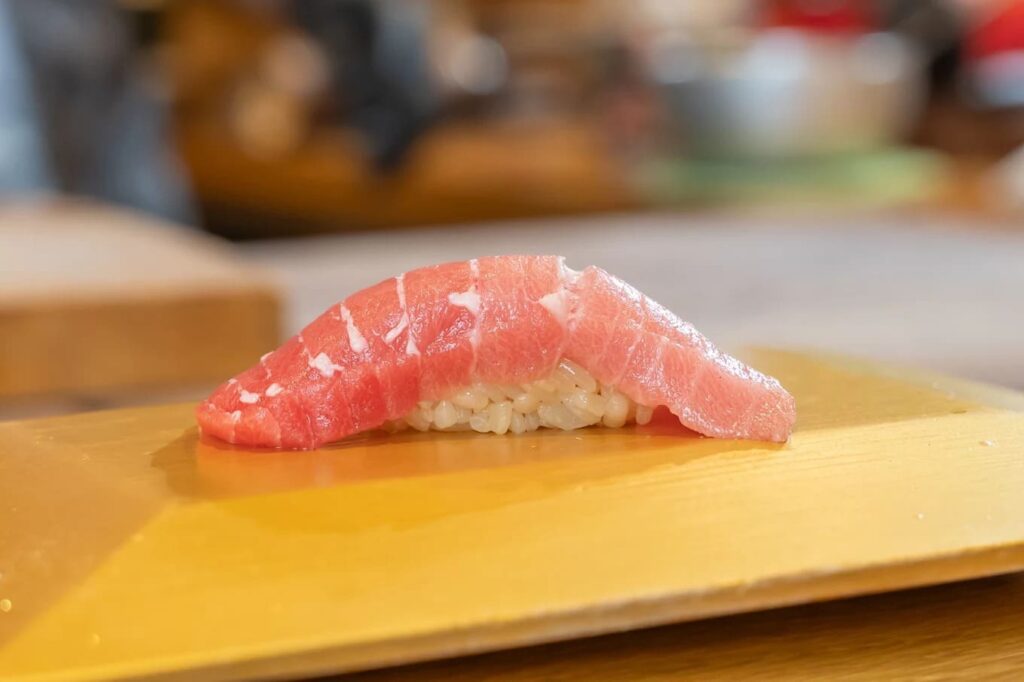 สำหรับสายโอมากาเสะซูชิตัวยง ขอแนะนำร้าน Sushi Akazu Bangkok ร้านนี้เขามีจุดเด่นที่ไม่เหมือนใครคือการใช้ข้าวซูชิสีแดง หรือ อะคาซึ (Akazu) ซึ่งเป็นน้ำส้มสายชูหมักจากกากสาเกแบบดั้งเดิม ทำให้ข้าวมีสีน้ำตาลแดงอ่อน ๆ และมีรสชาติที่ซับซ้อน กลมกล่อมกว่าข้าวซูชิทั่วไป ทานคู่กับปลาสด ๆ จะช่วยเสริมรสอูมามิของปลาให้เด่นชัดขึ้นไปอีกขั้น ที่นี่เป็นร้านซูชิสไตล์โอมากาเสะแบบพรีเมียมที่เน้นซูชิสไตล์เอโดะมาเอะ (Edomae) การคัดเลือกปลาและวิธีการบ่มปลาก็ทำอย่างพิถีพิถันสุด ๆ เพื่อให้ได้รสชาติที่ดีที่สุดตามฤดูกาล บรรยากาศของร้านก็ให้ความรู้สึกแบบญี่ปุ่นดั้งเดิม มีความสงบและเป็นส่วนตัวสูง เหมาะสำหรับคนที่อยากมาดื่มด่ำกับรสชาติของซูชิแบบจริงจัง ร้านอยู่ที่ซอยสุขุมวิท 47 ราคาคอร์สส่วนใหญ่จะเริ่มต้นที่ประมาณ 3,500 บาท