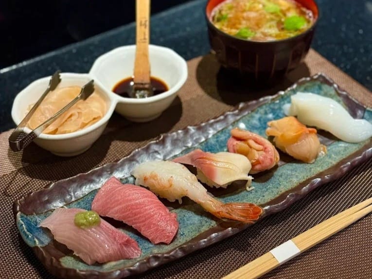 ร้านซูชิที่มีเมนูหลากหลายและเข้าถึงง่าย ที่นี่นำเสนออาหารญี่ปุ่นแบบอะลาคาร์ท (A La Carte) ที่มีทั้งซูชิ ซาชิมิ และเมนูอื่น ๆ ที่ปรุงด้วยวัตถุดิบคุณภาพเดียวกับร้านโอมากาเสะ แต่มาในรูปแบบที่เราสามารถเลือกสั่งได้ตามใจชอบ ทำให้ได้ทานของดีมีคุณภาพในราคาที่ควบคุมได้ ร้านนี้ถือเป็นร้านพี่น้องของร้าน Sushi Kanda ที่โด่งดังเรื่องโอมากาเสะ แต่ที่นี่จะให้บรรยากาศที่สบาย ๆ และทันสมัยกว่า มีเมนูให้เลือกเยอะมาก ๆ ไม่ว่าจะเป็นข้าวหน้าปลาดิบพรีเมียม เทมปุระ หรือเมนูย่างถ่านสไตล์ญี่ปุ่น ที่พลาดไม่ได้เลยคือเมนูซูชินิกิริที่ปั้นโดยเชฟผู้เชี่ยวชาญ ที่ยังคงความพิถีพิถันแบบเอโดะมาเอะไว้ครบถ้วน แม้จะเป็นการสั่งแบบอะลาคาร์ทก็ตาม เป็นร้านที่เหมาะสำหรับการมาทานอาหารกลางวัน หรือนัดเพื่อนมาทานอาหารเย็นแบบจัดเต็ม ร้านจะอยู่ที่ โครงการ Eight Thonglor ราคาต่อหัวโดยเฉลี่ยจะอยู่ที่ประมาณ 1,500-3,500 บาท
