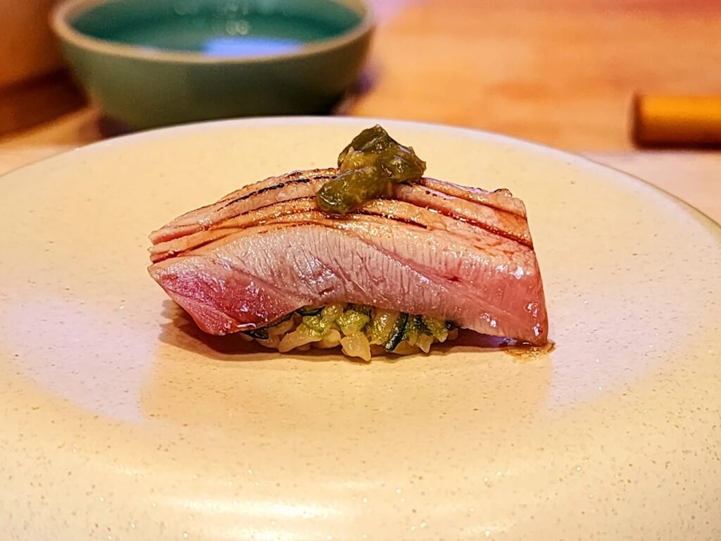 มาถึงร้านที่จองยากที่สุดในไทย และเป็นร้านโอมากาเสะซูชิระดับมิชลินที่ดังระเบิด ร้านนี้เป็นที่หมายปองของนักชิมทุกคนจริง ๆ โดยเฉพาะการได้ทานกับเชฟมาซาโตะโดยตรง จุดเด่นของร้านคือการเสิร์ฟซูชิสไตล์เอโดะมาเอะที่เน้นเทคนิคการปรุงข้าวและปลาแบบดั้งเดิมที่พิถีพิถันมาก ๆ เชฟมาซาโตะมีประสบการณ์ยาวนาน เคยได้รับดาวมิชลินในนิวยอร์กมาแล้วถึงสองร้าน วัตถุดิบทุกอย่างนำเข้าจากญี่ปุ่นทั้งหมด การันตีความสดใหม่และคุณภาพระดับสูง โดยเฉพาะไข่หอยเม่น หอยเป๋าฮื้อ และปู ที่จะแตกต่างกันไปตามฤดูกาล ทำให้แต่ละคำที่เราทานมันมีความว้าวและรสชาติที่ซับซ้อนมาก คอร์สมี 2 คอร์สหลัก ๆ ให้เลือก คือ Omakase 4,000++ บาท และ Premium Omakase 6,000++ บาท