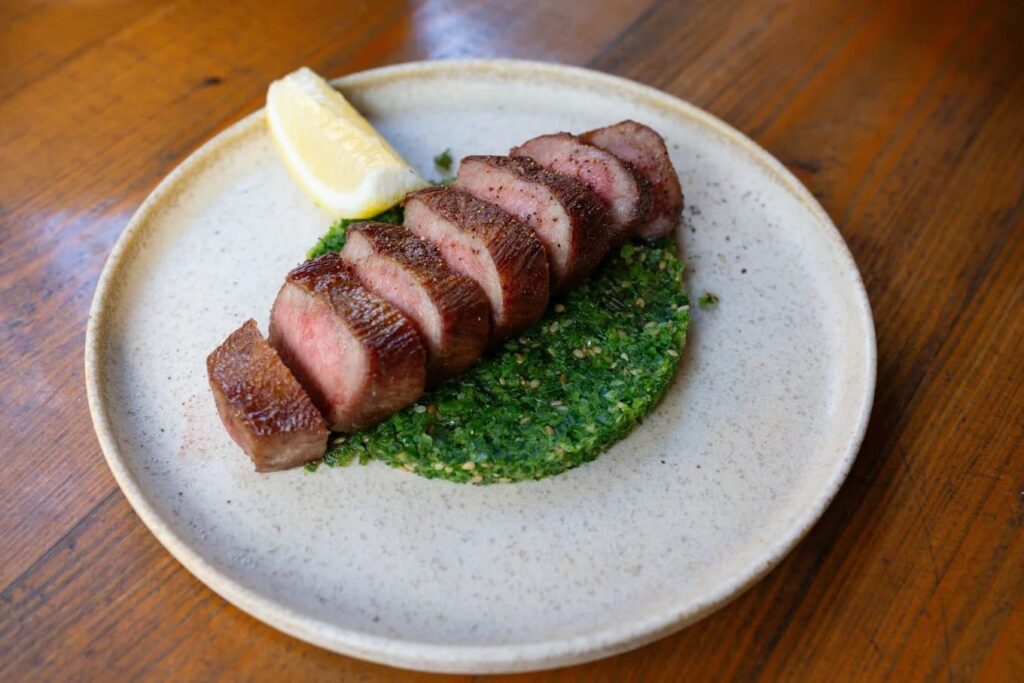 เมนูที่ต้องสั่งคือพวกบรรดาของย่างถ่านที่ทำออกมาได้รสชาติดีมาก โดยเฉพาะเนื้อ Hitachi Wagyu A4 ที่ลายไขมันแทรกสวยกำลังดี อย่างบนเตาถ่านร้อนๆ เนื้อจะนุ่มจนแทบละลายและมีกลิ่นหอมควันจางๆ ที่เป็นเอกลักษณ์ อีกจานที่เป็นไฮไลท์คือลิ้นวัวโกะคุโจ ชิ้นหนากำลังดี เคี้ยวหนึบสู้ฟันแต่ไม่เหนียวเลย ส่วนสายคุชิยากิหรือเมนูเสียบไม้บอกเลยว่าห้ามพลาด เพราะทางร้านใช้เทคนิคการย่างแบบดั้งเดิมทำให้ด้านนอกมีความกรอบนิดๆ แต่ข้างในยังฉ่ำน้ำ นอกจากนี้ยังมีเมนูซิกเนเจอร์อย่างไข่ตุ๋นเนื้อเนียนและซาซิมิสดๆ ที่คัดเกรดมาอย่างดี ส่งตรงจากญี่ปุ่นแท้ๆ ทุกจานแสดงถึงความพิถีพิถันของเชฟที่เน้นชูรสชาติธรรมชาติของวัตถุดิบเป็นหลัก
