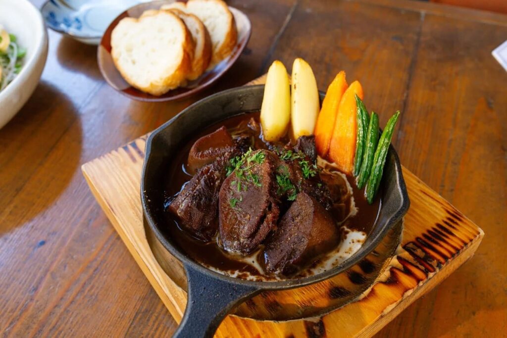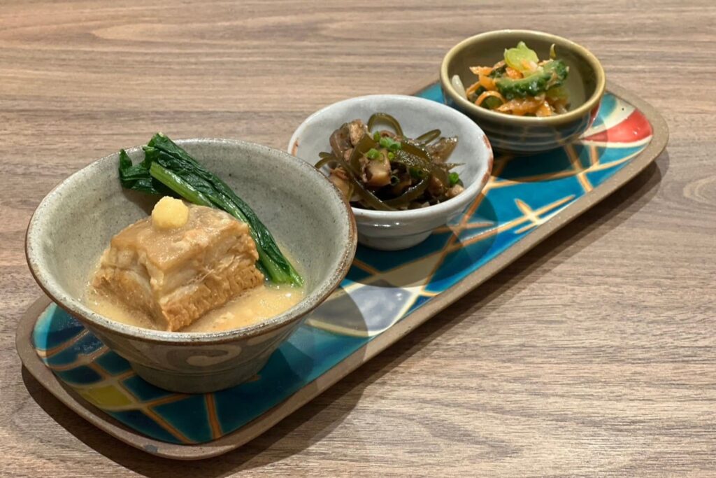 เมนูเด็ดที่เป็นตัวแทนของโอกินาว่าได้อย่างดีเยี่ยมต้องยกให้ โกยะชัมปุรุ หรือผัดมะระญี่ปุ่นที่ทางร้านทำออกมาได้กลมกล่อมมาก มะระมีความขมนิดๆ ช่วยตัดเลี่ยนได้ดี ตามด้วยราฟุเต เมนูหมูสามชั้นตุ๋นซีอิ๊วและเหล้าอาวาโมริจนเนื้อนุ่มแทบไม่ต้องเคี้ยว รสชาติเข้มข้นเข้าเนื้อสุดๆ อีกเมนูที่หาทานยากคือ จิมามิโดฟุ หรือเต้าหู้ถั่วลิสงที่มีความหนึบหนับเป็นเอกลักษณ์ และอย่าลืมตบท้ายด้วยของหวานอย่าง ซาตาอันดากี โดนัททอดสไตล์โอกินาว่าที่กรอบนอกนุ่มใน ทุกจานคัดสรรวัตถุดิบและปรุงด้วยกรรมวิธีดั้งเดิมที่ทำให้รู้สึกเหมือนได้บินไปกินที่เกาะริวกิวจริงๆ