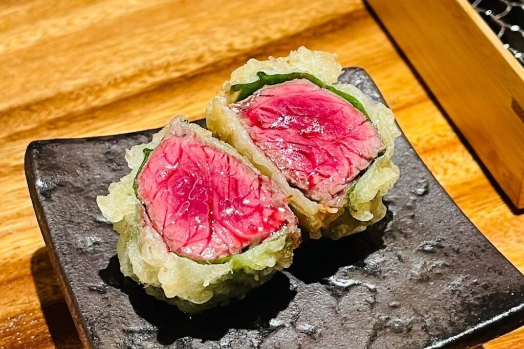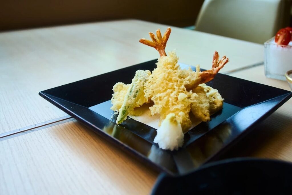 หัวใจสำคัญที่ทำให้เทมปุระของที่นี่พิเศษกว่าที่อื่นคือความบางเบาของแป้งที่เคลือบวัตถุดิบไว้อย่างพรีเมียม โดยเฉพาะเทมปุระกุ้งลายเสือ (Tiger Prawn Tempura) ที่เนื้อกุ้งเด้งสู้ฟันตัดกับความกรอบของแป้งได้อย่างลงตัว เมนูที่แนะนำว่าต้องสั่งคือ เทมปุระเนื้อวากิว (Wagyu Beef Tempura) ซึ่งหาทานได้ยากเพราะเชฟต้องใช้เทคนิคขั้นสูงในการทอดให้เนื้อข้างในยังคงความฉ่ำแบบมีเดียมแรร์ และยังมี Shrimp Mushroom Tempura เทมปุระกุ้งและเห็ดที่เป็นการผสมผสานรสสัมผัสที่น่าสนใจมาก ทุกชิ้นจะถูกเสิร์ฟตอนที่ร้อนที่สุดเพื่อให้ได้รสชาติดีที่สุด ทานคู่กับเกลือสูตรเฉพาะหรือซอสก็เข้ากันไปหมด รวมถึงของทะเลและผักสดๆ ที่คัดมาตามฤดูกาลก็ช่วยเติมเต็มมื้อนี้ให้สมบูรณ์แบบ