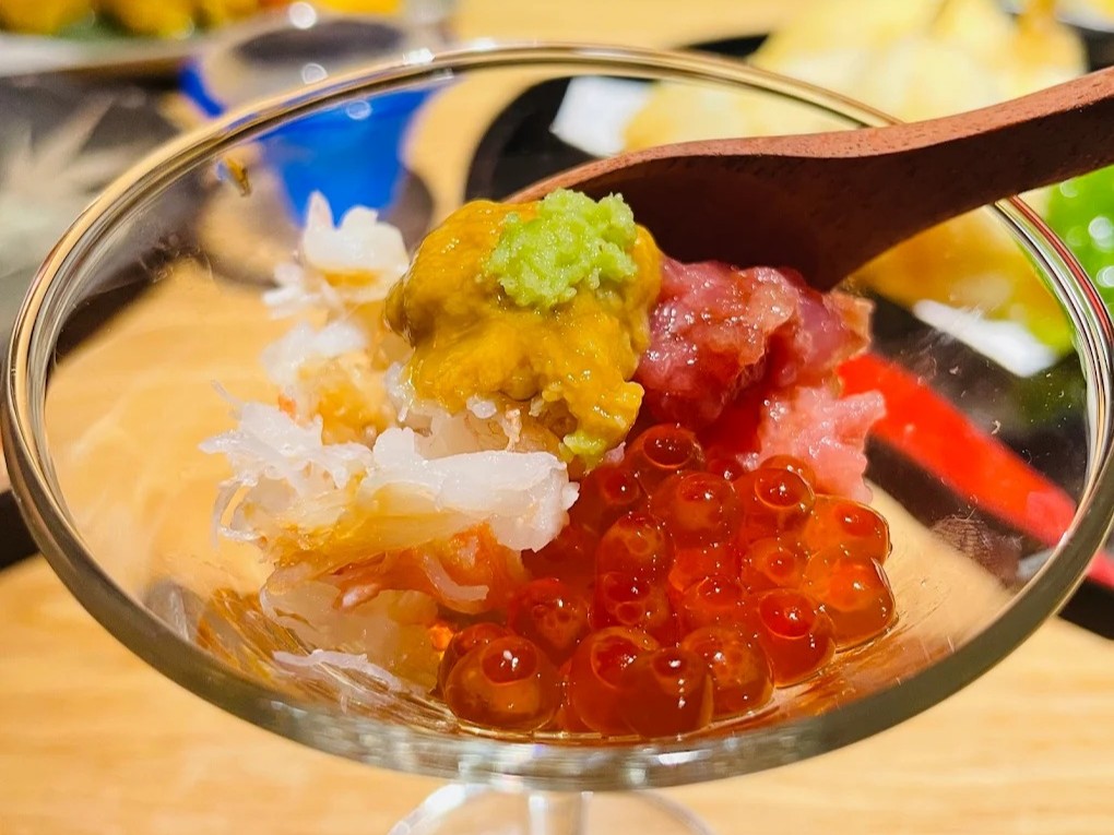 นอกจากซูชิแล้ว ยังมีเมนูที่น่าสนใจอีกเพียบ เช่น ซูชิในแก้วค็อกเทล ที่รวมอูนิ เนกิโทโร่ และไข่ปลาแซลมอนไว้ด้วยกันในถ้วยเดียว บรรยากาศร้านก็เรียบง่าย อบอุ่น มีความเป็นส่วนตัว และเชฟก็น่ารัก เป็นกันเอง คอยอธิบายเมนูตลอดมื้ออาหาร เป็นอีกร้านที่อยากให้ทุกคนได้มาลอง