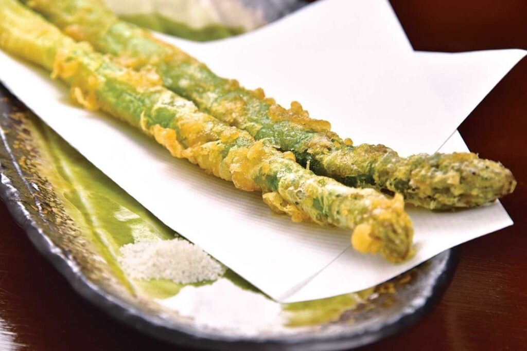 ปิดท้ายด้วยเมนูเครื่องเคียงที่มีเสน่ห์ไม่แพ้กันอย่างไข่นกกระทา ให้รสสัมผัสที่แน่นและมันของไข่แดงสุกกำลังดี ผิวนอกที่เคลือบแป้งกรอบช่วยเพิ่มมิติการเคี้ยวให้น่าสนใจขึ้น ส่วนหน่อไม้ฝรั่งที่มักจะเสิร์ฟมาทั้งต้นยาวๆ คือเมนูโปรดของคนรักผัก เพราะความกรอบสดของหน่อไม้ฝรั่งเมื่อโดนความร้อนเพียงชั่วครู่จะยังคงความหวานและความฉ่ำของน้ำในตัวไว้ได้ดี เป็นเมนูที่ปิดมื้ออาหารได้อย่างสวยงาม