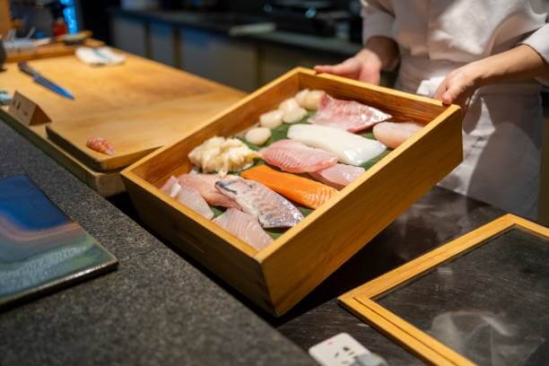 เรียกได้ว่าเป็นหัวใจสำคัญที่กำหนดราคาเลยก็ว่าได้ ร้านโอมากาเสะระดับท็อปจะลงทุนไปกับการคัดสรรปลาและอาหารทะเลจากแหล่งที่ดีที่สุดในโลก โดยเฉพาะจากตลาดปลาในญี่ปุ่น โดยจะเน้นปลาตามฤดูกาลที่จับได้ในช่วงที่ปลาอร่อยที่สุด และอาจจะมีปลาหายาก หรืออูนิคุณภาพสูง ซึ่งวัตถุดิบเหล่านี้มีราคาต้นทุนที่สูงมาก