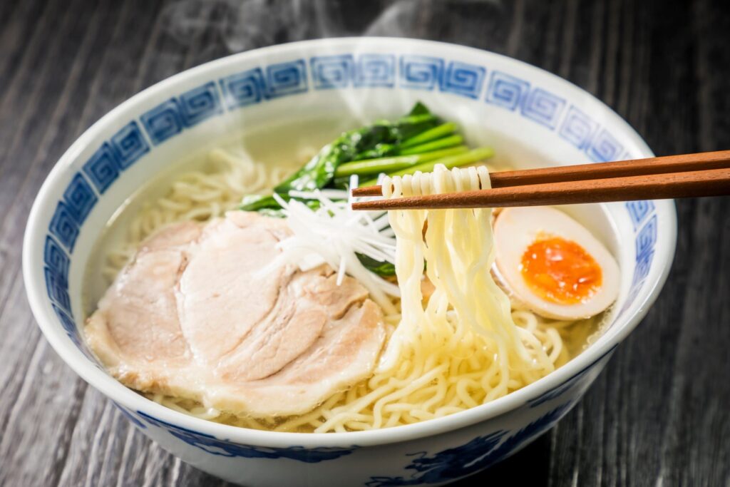ขยับมาทางตอนใต้ของฮอกไกโดที่เมืองฮาโกดาเตะ รสชาติราเมงจะเปลี่ยนไปอย่างสิ้นเชิง จากซุปข้นมาเป็นชิโอะราเมงหรือซุปเกลือที่ใสสะอาดตา เชฟที่นี่จะเน้นการโชว์ความสดของวัตถุดิบทางทะเลและกระดูกไก่ที่เคี่ยวจนได้น้ำสต็อกสีทองใส รสชาติเบาสบายแต่แฝงด้วยลุ่มลึกของรสอูมามิ ตัวอย่างเครื่องเคียงที่มักจะพบคือแผ่นสาหร่ายและต้นหอมญี่ปุ่นซอย ซึ่งช่วยเสริมกลิ่นอายของเมืองท่าริมทะเลได้ดีมาก