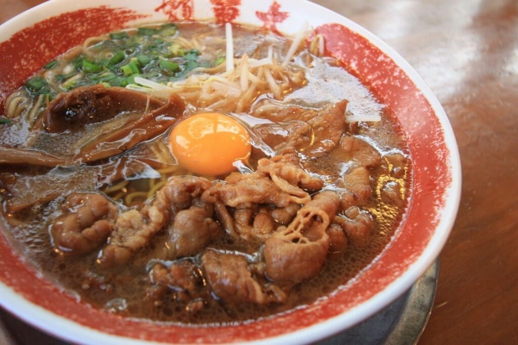 ถ้าใครชอบรสชาติสไตล์สุกี้ยากี้ต้องหลงรักราเมงจากโทคุชิม่าแน่นอน น้ำซุปมีสีน้ำตาลเข้มจากการปรุงรสด้วยโชยุรสเข้มข้นผสมกับกระดูกหมู รสชาติจะออกหวานและเค็มนำ ความแตกต่างที่ชัดเจนของราเมงปะเภทนี้คือการใช้เนื้อหมูสไลด์ผัดซอสมาเสิร์ฟแทนหมูชาชูแผ่น และที่สำคัญที่สุดคือการตอกไข่ดิบลงไปตรงกลางชาม ซึ่งเมื่อไข่ผสมกับซุปสีน้ำตาลเข้มจะทำให้รสชาติมีความละมุนและนัวขึ้นอย่างมาก เหมาะมากสำหรับทานคู่กับข้าวสวยร้อนๆ เป็นมื้อใหญ่ที่ให้พลังงานเต็มที่