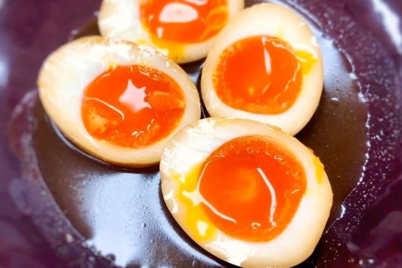 อาจิทามะ (Ajitama) หรือไข่ต้มซอสยางมะตูม คือไอเทมที่คนรักราเมงมักจะสั่งเพิ่มเสมอ หัวใจสำคัญอยู่ที่การคุมเวลาต้มไข่ให้ไข่ขาวสุกกำลังดีแต่ไข่แดงยังมีความหนืดเป็นครีมเยิ้ม หลังจากปอกเปลือกแล้วต้องนำไปดองในซอสสูตรพิเศษที่มีส่วนผสมของโชยุและขิงนานข้ามคืน เมื่อเจาะไข่แดงให้ไหลออกมาผสมกับน้ำซุปกระดูกหมู จะช่วยเพิ่มความนัวและความเข้มข้นให้รสชาติในชามยกระดับขึ้นไปอีกขั้น