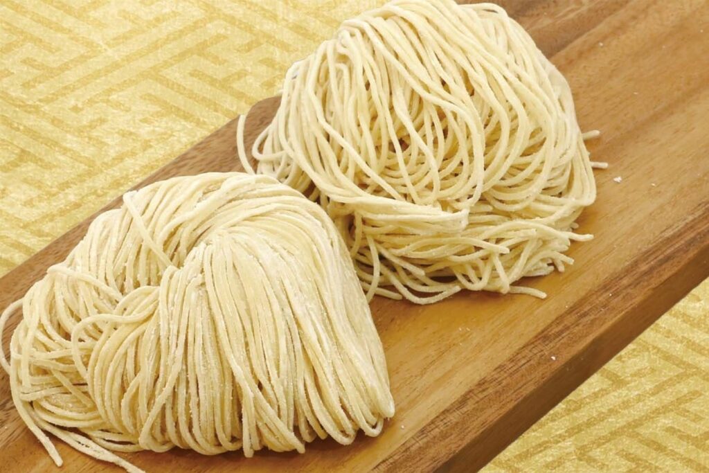 หัวใจสำคัญที่กำหนดเนื้อสัมผัสของราเมงคือเส้น ซึ่งทำจากแป้งสาลี น้ำ และที่ขาดไม่ได้คือคันซุย หรือน้ำด่างเข้มข้นที่ช่วยให้เส้นมีสีเหลืองและมีความเหนียวนุ่มสู้ฟัน ขนาดและความหยักของเส้นถูกออกแบบมาให้เหมาะสมกับน้ำซุปแต่ละชนิด ตัวอย่างเช่น เส้นตรงขนาดเล็กจิ๋วที่นิยมในแถบฮากาตะถูกทำมาเพื่อให้ซุปกระดูกหมูเข้มข้นเคลือบเส้นได้ในปริมาณที่พอดี หรือเส้นหยักขนาดกลางที่พบได้บ่อยในโชยุราเมง ซึ่งความหยักนี้เองจะช่วยทำหน้าที่เหมือนฟองน้ำที่ดักจับน้ำซุปใสให้ขึ้นมาพร้อมกับการสูดเส้นในทุกคำ