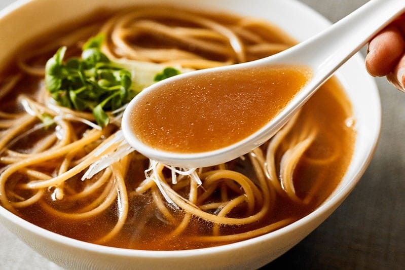 ถ้าพูดถึงรสชาติคลาสสิกที่เป็นรากฐานของราเมงในโตเกียว ต้องยกให้ซุปโชยุ น้ำซุปจะมีลักษณะใสสีน้ำตาลทองจนถึงน้ำตาลเข้ม เกิดจากการปรุงรสด้วยซีอิ๊วญี่ปุ่นที่หมักจากถั่วเหลืองและข้าวสาลี เบสของน้ำสต็อกมักจะเคี่ยวจากโครงไก่ผสมกับผักและปลาแห้งเพื่อให้ได้กลิ่นหอมที่นุ่มนวล รสชาติจะเน้นความเค็มนำตามด้วยความหวานจางๆ จากน้ำต้มกระดูก ตัวอย่างที่ชัดเจนคือร้านราเมงแถวอาซากุสะในยุคบุกเบิกที่มักเสิร์ฟพร้อมเส้นหยักขนาดกลาง หมูชาชู และหน่อไม้ ให้ความรู้สึกสดชื่นและทานได้บ่อยไม่เบื่อ