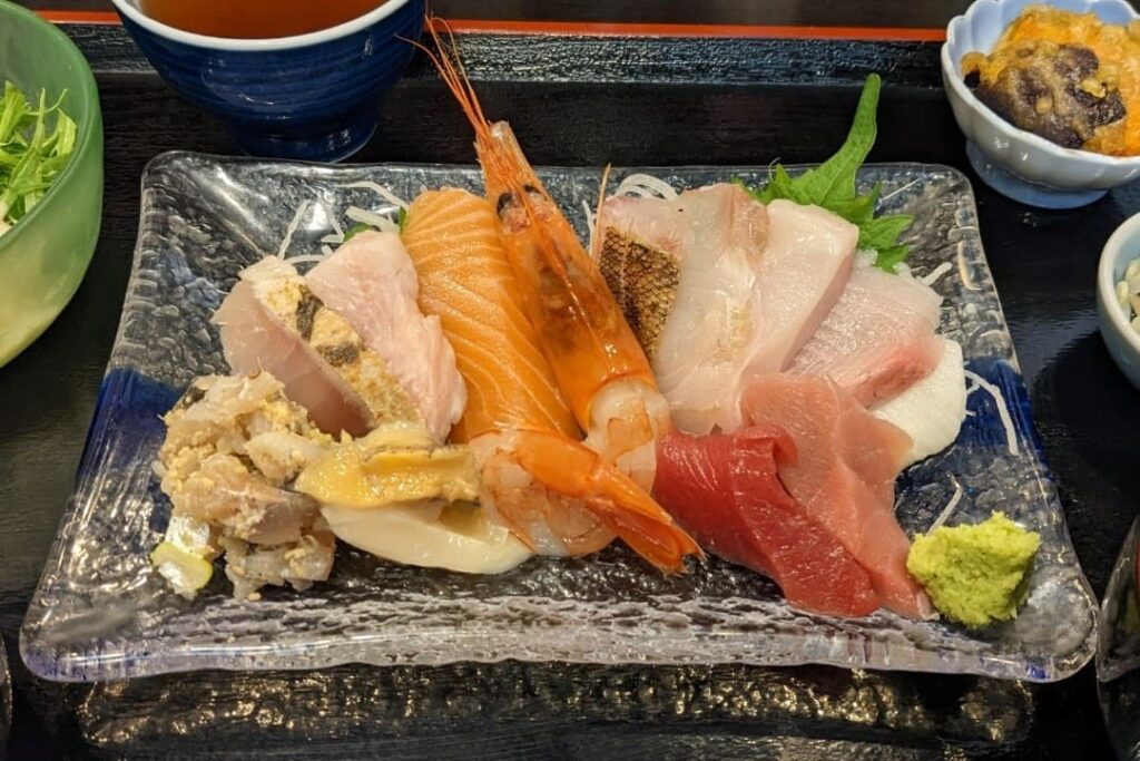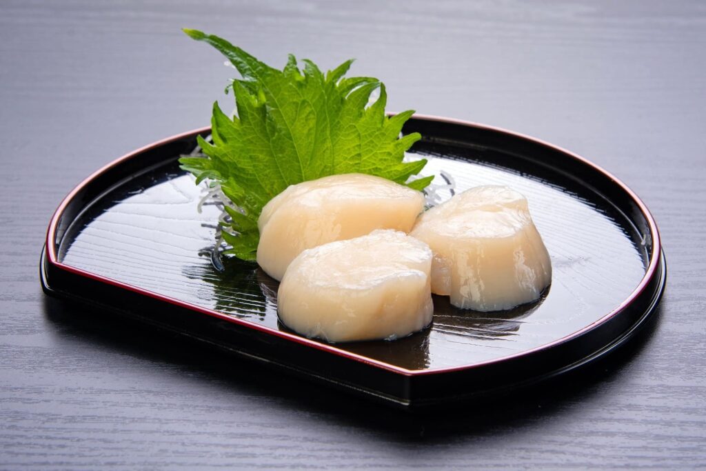 สำหรับสายที่ชอบอาหารทะเลประเภทฝาเดียว หอยเชลล์โฮตาเตะจากฮอกไกโดคือที่สุดของความฟิน เนื้อหอยเชลล์ขนาดใหญ่ที่ถูกแล่ออกมาเป็นแผ่นหนา จะมีความนุ่มและให้รสหวานฉ่ำที่เป็นธรรมชาติมาก ยิ่งเมื่อได้ทานคู่กับวาซาบิสด จะช่วยชูความหวานของเนื้อหอยให้เด่นชัดขึ้นมาทันที เป็นซาชิมิที่ให้ความรู้สึกสดชื่นและมีกลิ่นอายของท้องทะเลอย่างชัดเจน