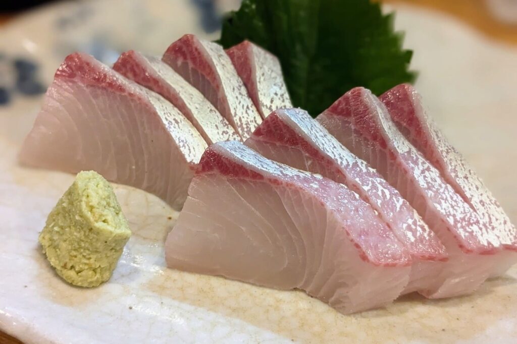 ปลาฮามาจิหรือปลาหางเหลือง เป็นปลาที่มีเนื้อสีขาวอมชมพูเรื่อๆ จุดเด่นคือความกรุบของเนื้อที่ยังคงความนุ่มเอาไว้ได้อย่างสมดุล รสชาติจะมีความหวานสะอาดและมีกลิ่นหอมของไขมันเฉพาะตัว ยิ่งถ้าเป็นปลาที่จับได้ในช่วงฤดูหนาว เนื้อจะมีไขมันสะสมมากเป็นพิเศษ ทำให้เวลาทานแบบสดๆ จะรู้สึกถึงความชุ่มฉ่ำที่กระจายไปทั่วทั้งคำ