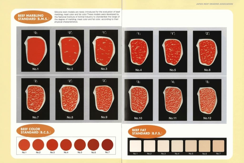 เมื่อได้ตัวอักษรมาแล้ว ขั้นตอนต่อไปคือการตัดสินด้วยสายตาและความรู้สึกผ่านตัวเลข 1 ถึง 5 กรรมการจะพิจารณาจาก 4 องค์ประกอบหลักคือ ความสวยงามของลายไขมัน สีและเนื้อสัมผัสของเนื้อแดง ความแน่นละเอียดของเนื้อ และสีกับคุณภาพของไขมัน