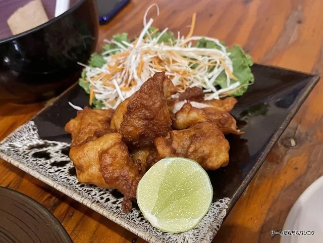 ร้านอิซากายะในย่านอโศกที่เน้นเมนูย่างง่าย ๆ และมีเครื่องดื่มหลากหลาย ร้านนี้ตั้งอยู่ใกล้ตึกสำนักงานใหญ่ ๆ ทำให้เป็นแหล่งรวมตัวของวัยทำงานหลังเลิกงานเลยก็ว่าได้ เมนูที่นี่เน้นความอร่อยแบบง่าย ๆ สไตล์อิซากายะที่เข้ากันได้ดีกับเครื่องดื่มเย็น ๆ มีเมนูยอดนิยมอย่าง ไก่คาราอาเกะ และเมนูยากิโทริ ปิ้งย่างเสียบไม้ที่ย่างมาร้อน ๆ หอม ๆ แถมเครื่องดื่มก็เสิร์ฟแบบจัดเต็ม ราคาของที่นี่ถือว่าอยู่ในระดับกลาง ๆ ถึงค่อนข้างสูงตามทำเล โดยเฉลี่ยจะอยู่ที่ประมาณ 500-1,000 บาท ต่อหัว