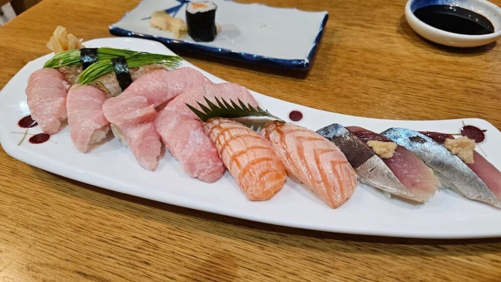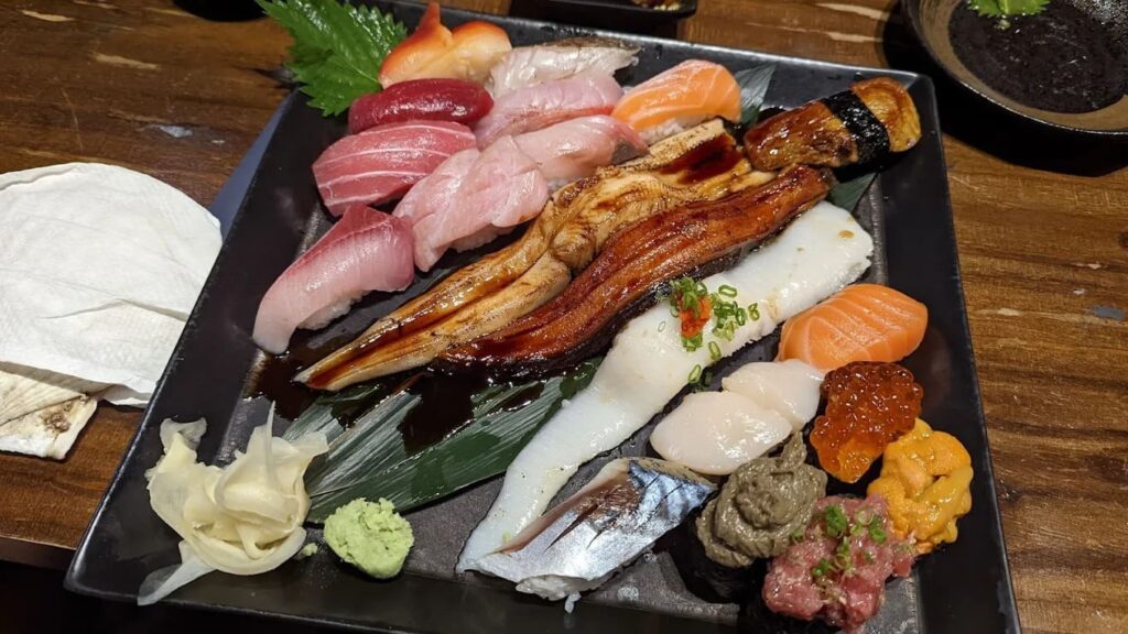 มาถึงร้านสุดท้ายของบทความนี้ ร้าน ShinsenBKK ที่ตั้งอยู่ในซอยสุขุมวิท39 จุดขายของที่นี่คือเป็นแหล่งรวมอาหารทะเลและวัตถุดิบญี่ปุ่นคุณภาพพรีเมีย ใครที่อยากทานซูชิและซาชิมิที่สดใหม่เหมือนเพิ่งจับขึ้นมาจากทะเลต้องมาที่นี่เลย ร้านเสิร์ฟวัตถุดิบตามฤดูกาล ทำให้ได้ลิ้มรสปลาที่ดีที่สุดในแต่ละช่วงเวลา ซูชิของที่นี่จึงการันตีความอร่อยและความสดแบบเต็มคำ ที่นี่ไม่ได้เป็นแค่ร้านอาหาร แต่ยังเป็นตลาดที่เราสามารถเลือกซื้อวัตถุดิบสดๆ รวมถึงอาหารปรุงสำเร็จอื่นๆ กลับไปทำเองที่บ้านได้ด้วย ตัวร้านตกแต่งสวยงามและมีที่นั่งให้เลือกทานหลายโซน ทำให้บรรยากาศดีมากๆ ราคาต่อหัวอยู่ที่ประมาณ 1,000-2,500บาท