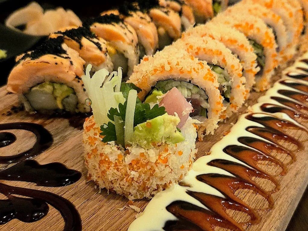 ร้านซูชิชื่อดังในย่านพร้อมพงษ์ที่ใครๆ ก็ต้องเคยได้ยิน ร้านตั้งอยู่สุขุมวิท 31 ร้านนี้คนแน่นตลอดเพราะมีเมนูเด็ดที่คนพูดถึงกันปากต่อปาก นั่นคือโรลฟิวชั่นที่มีเอกลักษณ์และหน้าตาสวยงาม โดยเฉพาะเมนูซิกเนเจอร์ที่ห้ามพลาดอย่าง เมนู Crunchy โรลที่ด้านนอกกรอบๆ ส่วนด้านในเป็นกุ้งเทมปุระและปลาไหล หรือเมนู Volcano ที่เสิร์ฟมาแบบภูเขาไฟลาวาเยิ้มๆ ทั้งอร่อยและถ่ายรูปสวยสุดๆ ทำให้เป็นร้านซูชิฟิวชั่นที่ครองใจคนไทยมายาวนาน นอกจากโรลแล้ว ก็ยังมีนิกิริซูชิและซาชิมิที่สดใหม่ไว้บริการด้วย เป็นอีกหนึ่งร้านซูชิในตำนานย่านพร้อมพงษ์ที่ไม่ควรพลาดเลย ราคาต่อหัวอยู่ที่ประมาณ 800-1,500 บาท