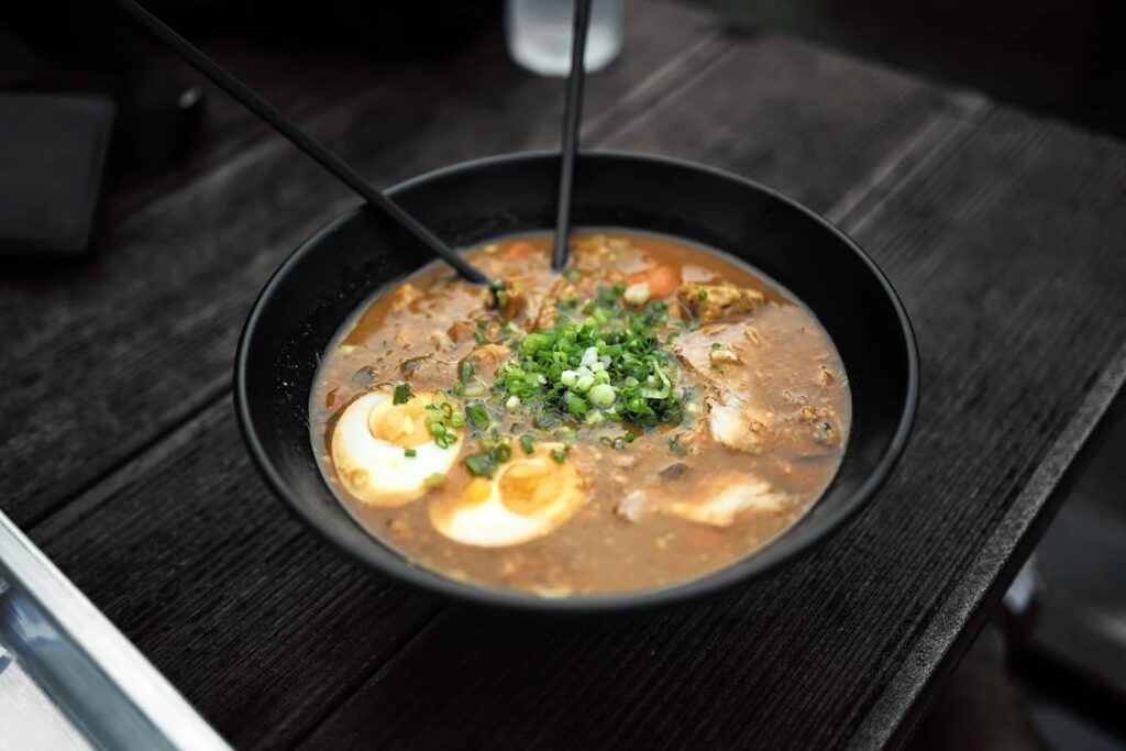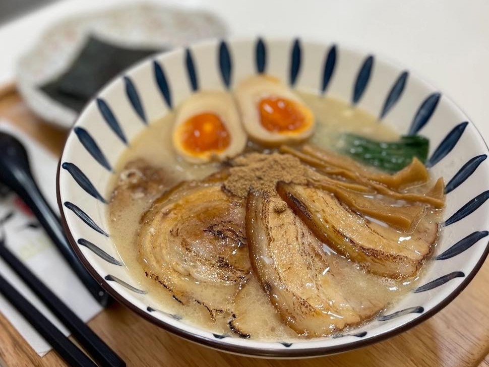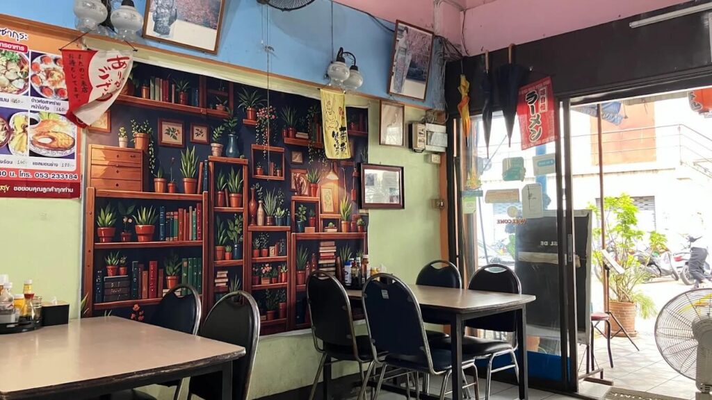 ร้านนี้เป็นร้านราเมงเล็กๆ ในคูเมืองที่คิวยาวมาก จุดเด่นที่ทำให้ร้านนี้เป็นที่รักของคนรักราเมงคือ น้ำซุปกระดูกหมู (Tonkotsu) และซุปกระดูกวัวที่เข้มข้นมาก ๆ ทางร้านบอกว่าเคี่ยวซุปด้วยความพิถีพิถันนานหลายชั่วโมง แถมยังมีซุปเบสที่ทำจากผัก ทำให้รสชาติกลมกล่อมและไม่เลี่ยนจนเกินไป นอกจากซุปที่เด็ดแล้ว หมูชาชูของที่นี่ก็นุ่มมาก ๆ บางเมนูหมูจะถูกย่างมาเล็กน้อยเพิ่มความหอมยิ่งขึ้นด้วยนะ นอกจากราเมงแล้ว เมนูอื่น ๆ ก็ทำได้ดีไม่แพ้กัน ร้านนี้ให้บรรยากาศเหมือนร้านราเมงในญี่ปุ่นจริง ๆ มีที่นั่งรอบเคาน์เตอร์ และที่นั่งด้านนอกให้เลือกชิลล์ ๆ ที่สำคัญคือราคาเริ่มต้นแค่หลักร้อยต้น ๆ และมีถั่วงอกดองให้เติมฟรีด้วย ร้านตั้งอยู่ที่โครงการกาดกลางเวียง ในคูเมือง ราคาต่อหัวอยู่ที่ประมาณ 100-250 บาท