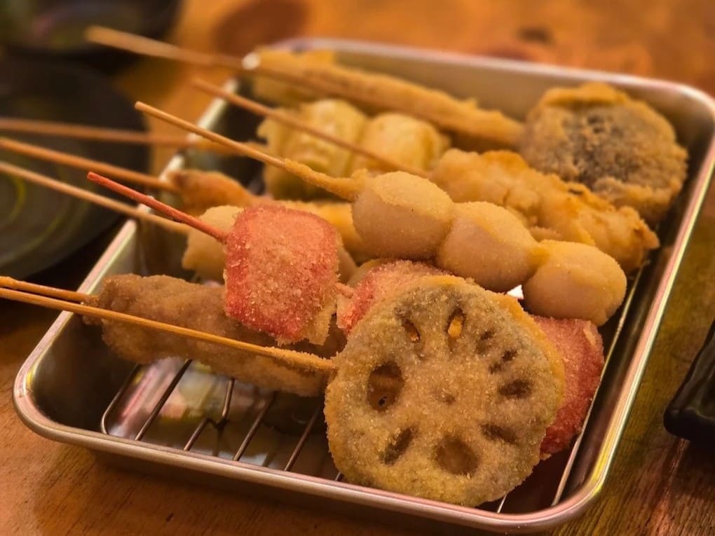 ต่อมาขอพูดถึงร้านอิซากายะที่ราคาดีงาม และเต็มไปด้วยคึกคักจัดเต็มในย่านสุขุมวิท ร้าน EBISU SHOTEN Thong Lor ร้านนี้มีจุดเด่นคือเมนูอาหารหลากหลายสไตล์โอซาก้าในราคามิตรภาพ ทำให้เป็นที่นิยมของคนญี่ปุ่นและคนไทยที่มองหาร้านนั่งชิลล์หลังเลิกงาน เมนูเด็ดที่ห้ามพลาดเลยคือ คุชิคัตสึ (Kushikatsu) หรือของทอดเสียบไม้สไตล์โอซาก้า ที่ทอดมาได้กรอบนอกนุ่มใน จิ้มกับซอสสูตรเด็ดของทางร้านแล้วฟินสุดๆ นอกจากนี้ยังมีเมนูยอดฮิตอื่นๆ อย่างทาโกะยากิ โอโคโนมิยากิ และข้าวหน้าต่างๆ ให้เลือกสั่งเพียบ บรรยากาศภายในร้านก็สนุกสนาน มีป้ายไฟและของตกแต่งสไตล์ญี่ปุ่น ทำให้รู้สึกเหมือนได้ไปนั่งอยู่ในร้านอิซากายะที่ญี่ปุ่นจริงๆ แถมยังเปิดถึงดึกมากๆ ด้วย ราคาต่อหัวก็ดีงาม อยู่ในช่วงประมาณ 250-500 บาท